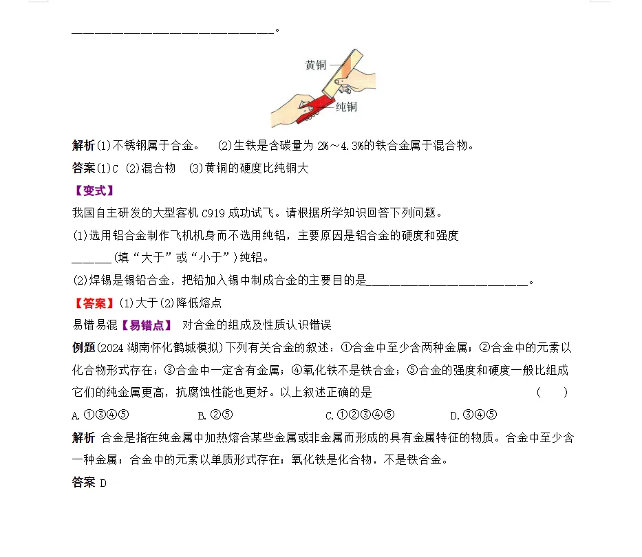 >2026人教版九年级下册初中化学《讲义Word版》题型梳理 举一反三含答案(可免费下载打印)