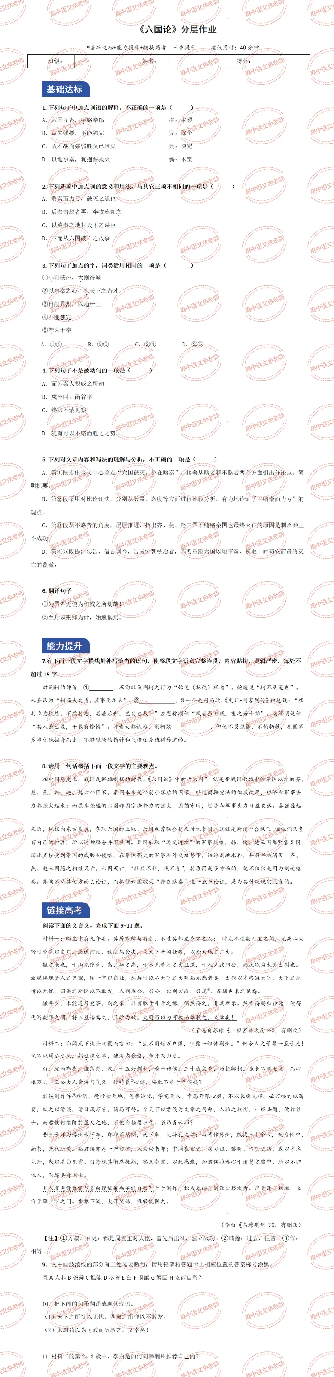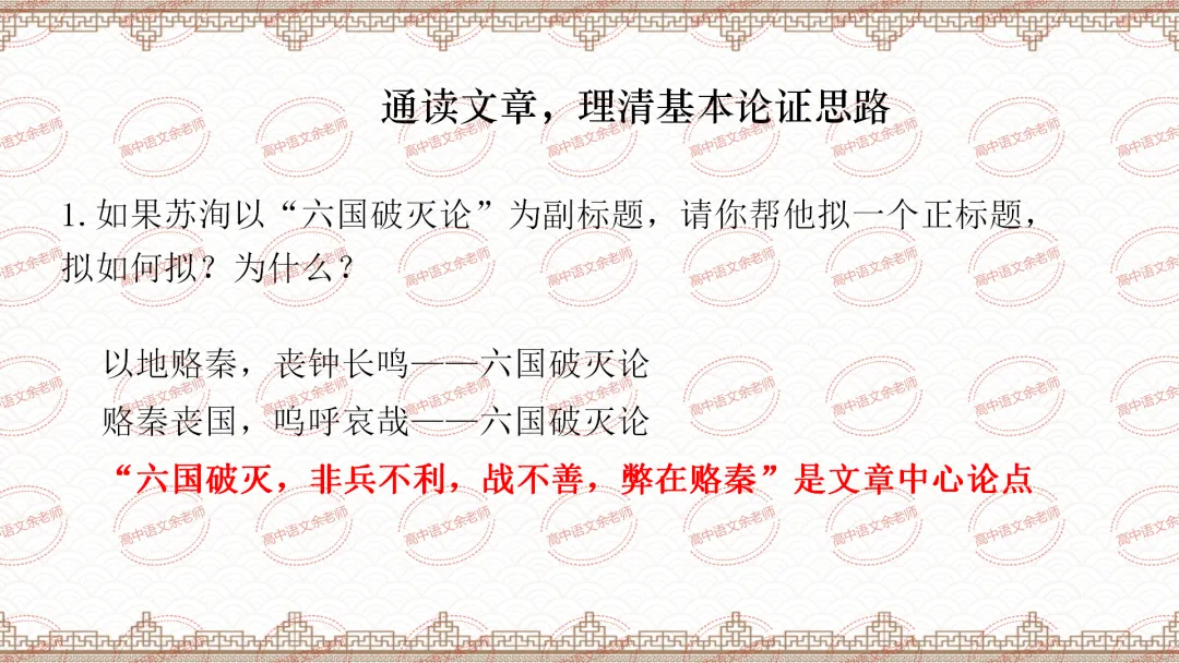《六国论》教案设计及课件PPT 导学案 分层作业 【适配高中语文 必修下册】教师备课
