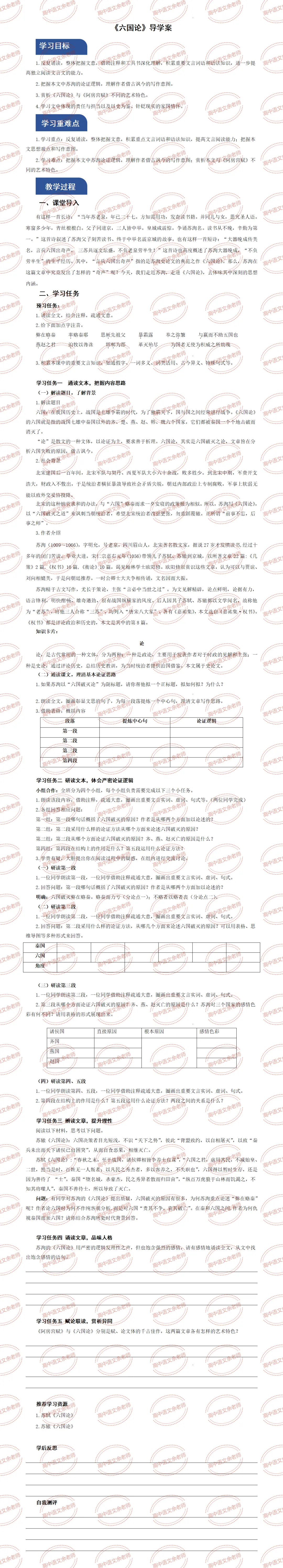 >《六国论》教案设计及课件PPT 导学案 分层作业 【适配高中语文 必修下册】教师备课