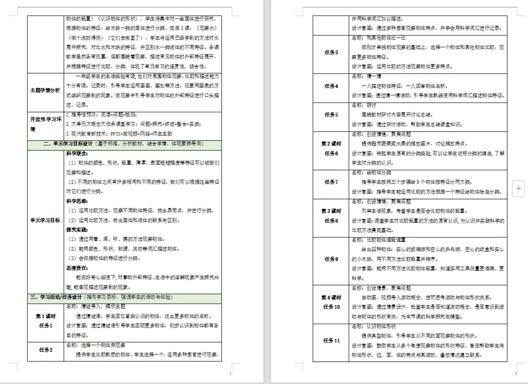 >【科学教案课件】新教材教科版版小学科学一年级下册全册大单元教学表格配套教案(含反思)《1.1 观察物体的体征》