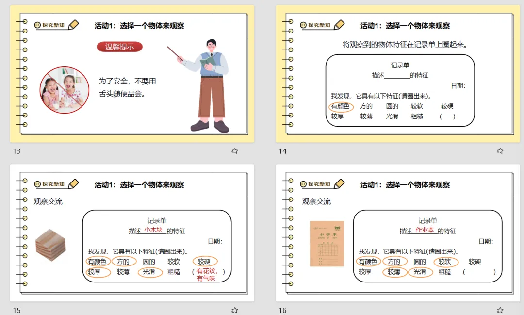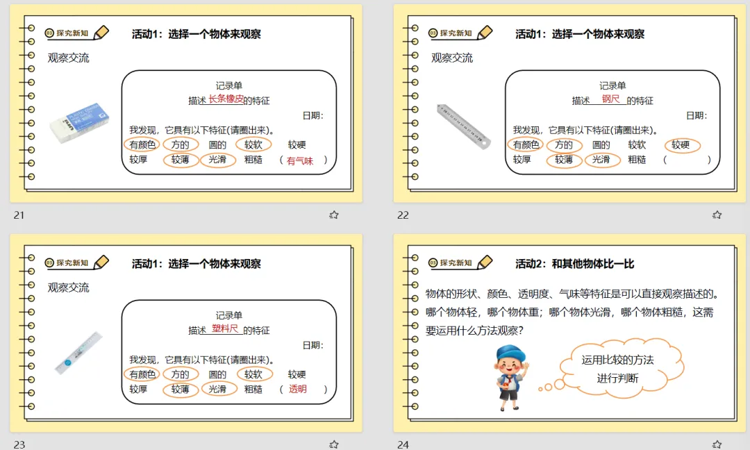 【科学教案课件】新教材教科版版小学科学一年级下册全册文本式配套教案《1.1 观察物体的体征》