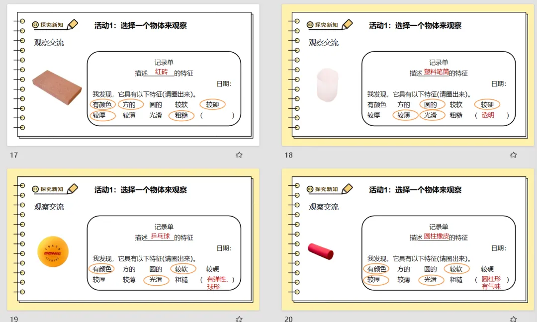 【科学教案课件】新教材教科版版小学科学一年级下册全册表格式配套教案《1.1 观察物体的体征》