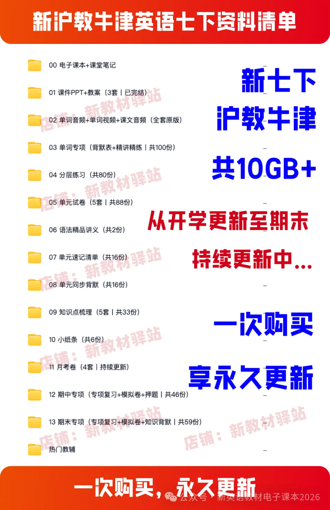 2026重新整理,分类归纳新沪教牛津版英语七下资料包,广深沈阳地区用(含电子课本+教师用书+课件PPT+教学设计+同步分层练习+单元测试+期中试卷+期末试卷+语法讲练+知识点总结+课文单词跟读音频MP3)。文末获取下载方式!