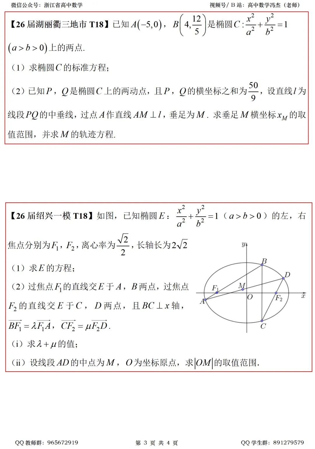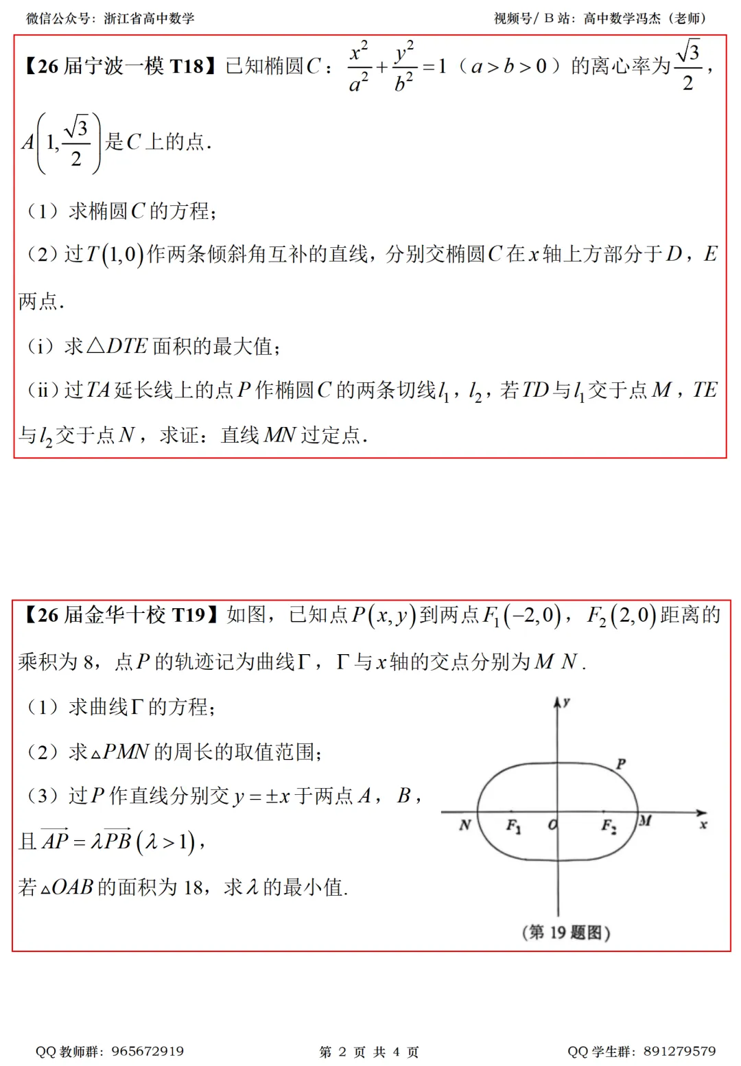 (注:台州卷因最后两道大题并非圆锥曲线,未予收录,我们聚焦的是高考最后两道大题难度的圆锥曲线题型;嘉兴则因一模未考数学,暂未纳入。)唯有紧跟考情,才能真实反映课程效果,帮助同学们精准提升。