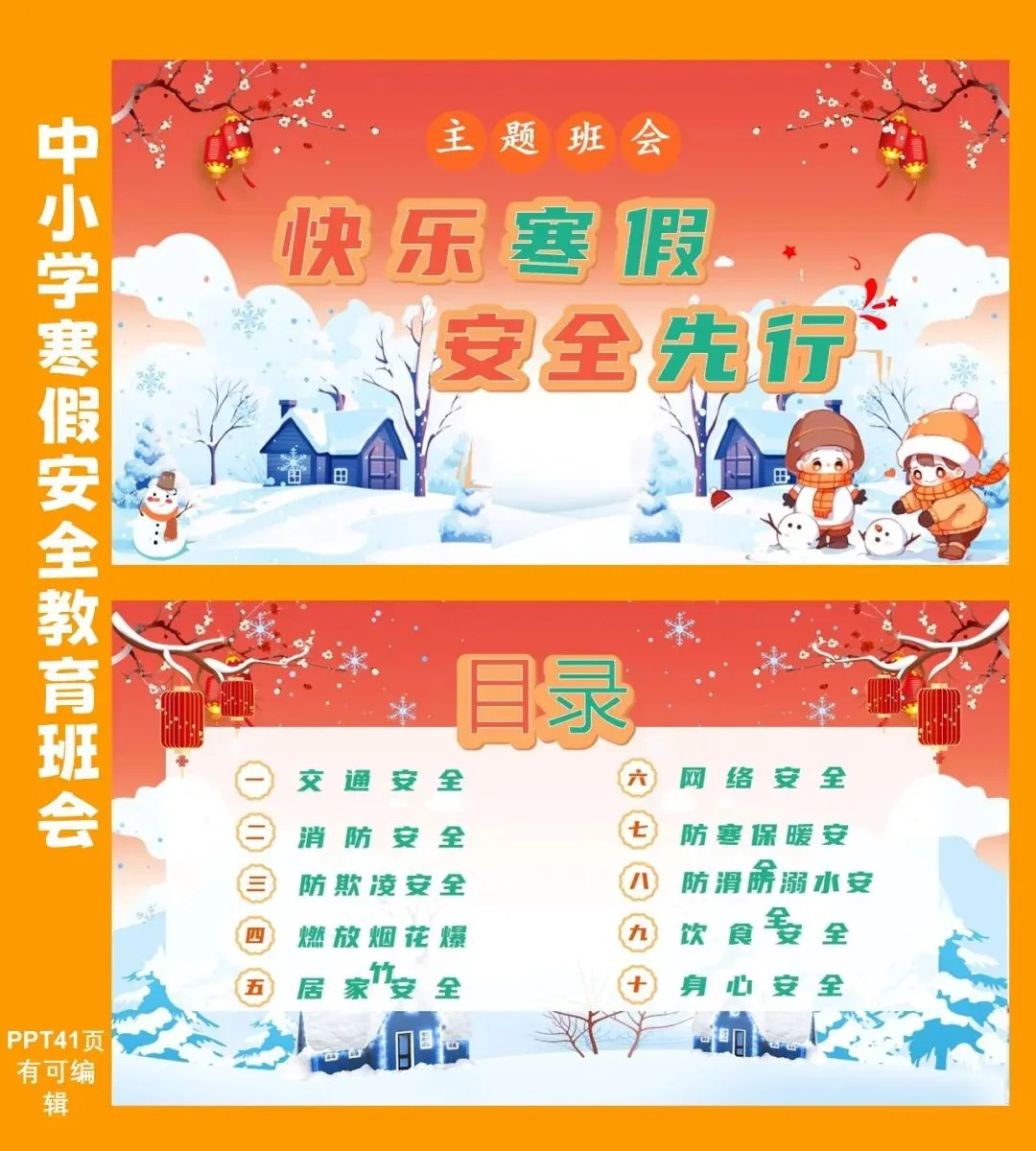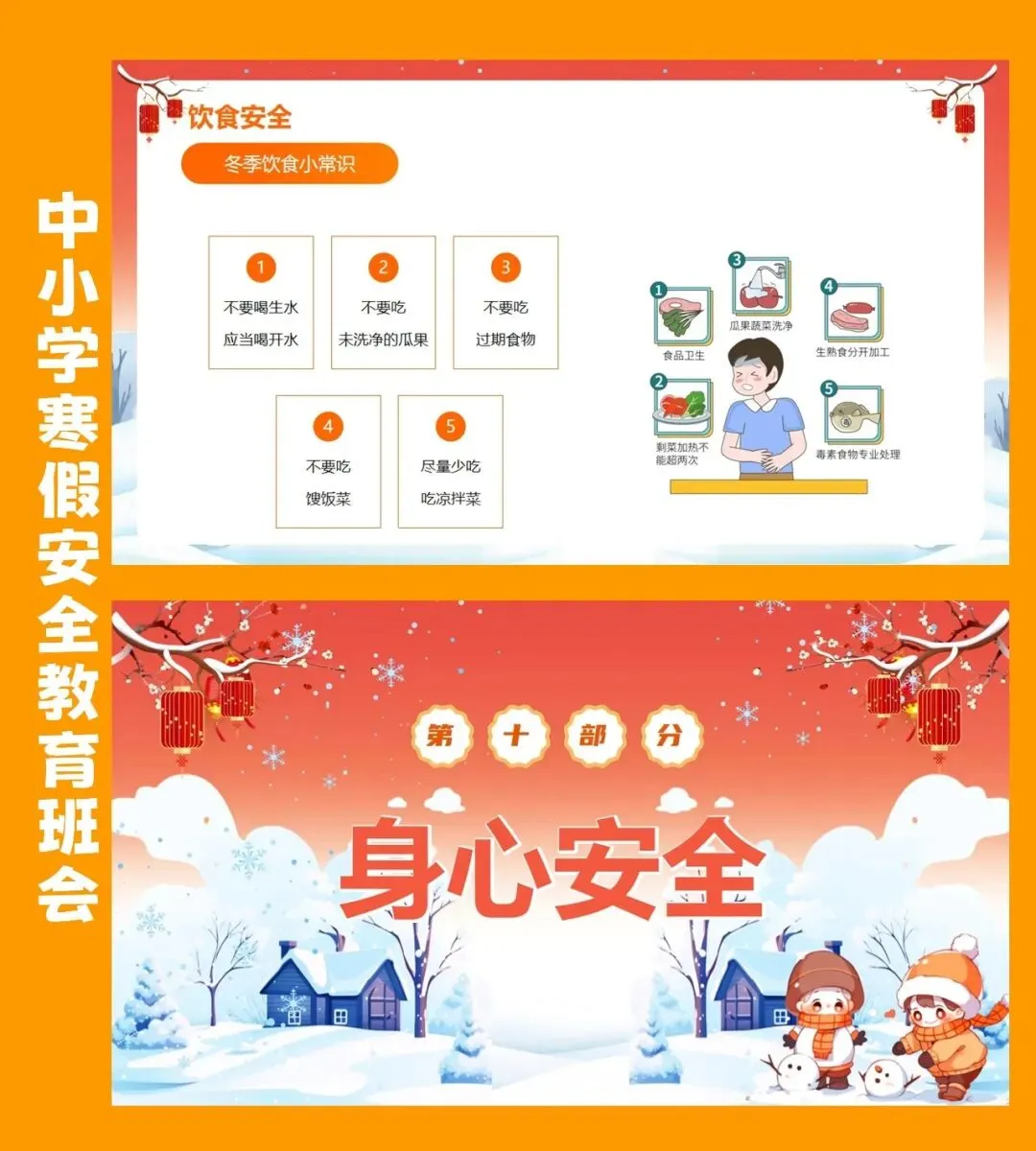 寒假安全教育班会课件《快乐寒假安全先行》课件含配套教案 包含十项安全教育,提升学生安全意识,增长学生安全技能。