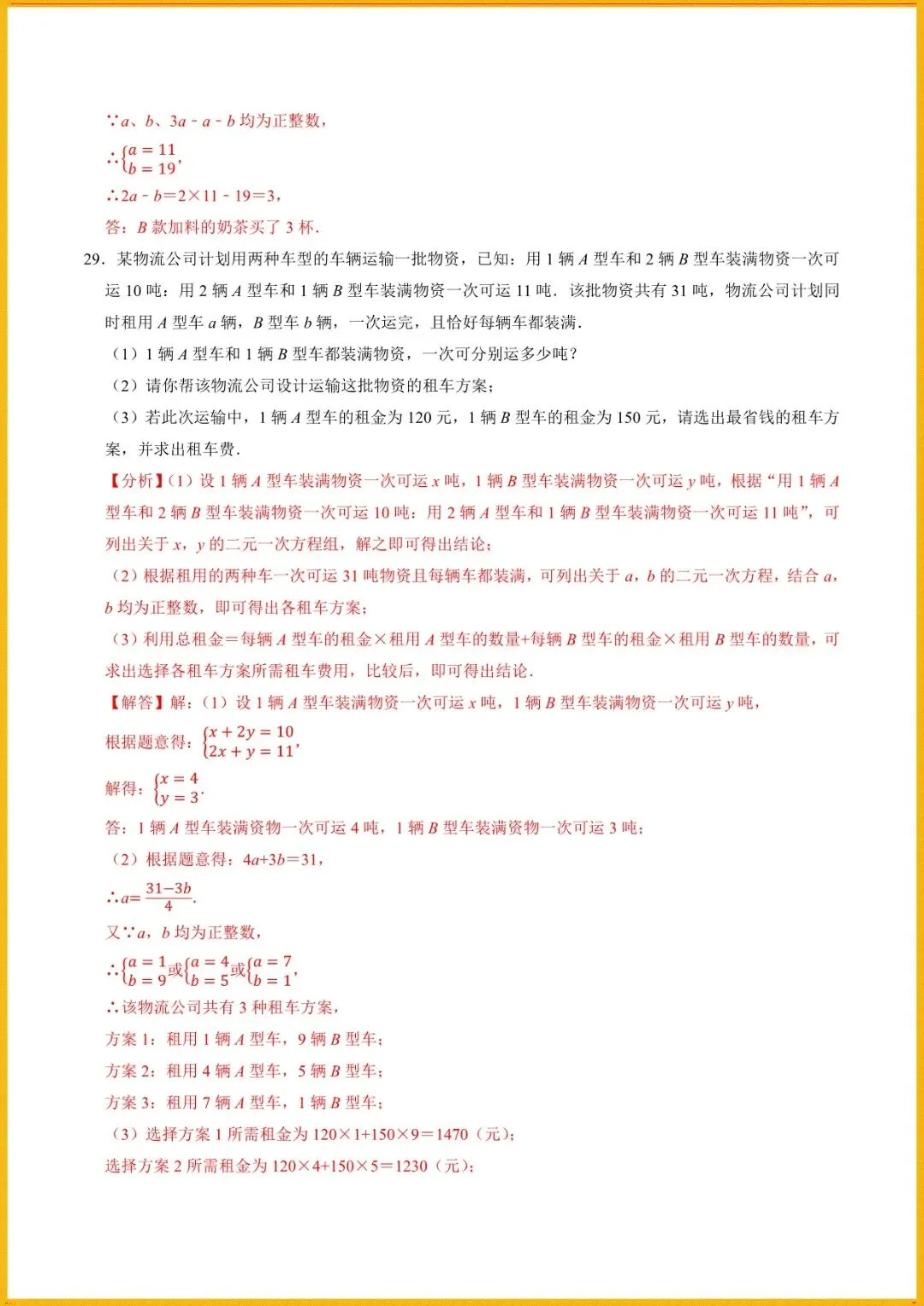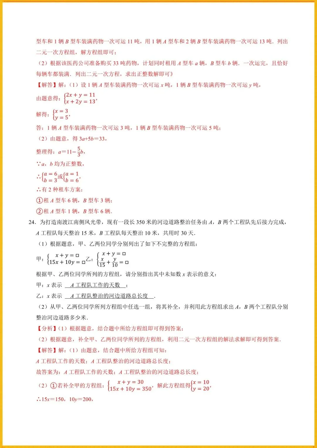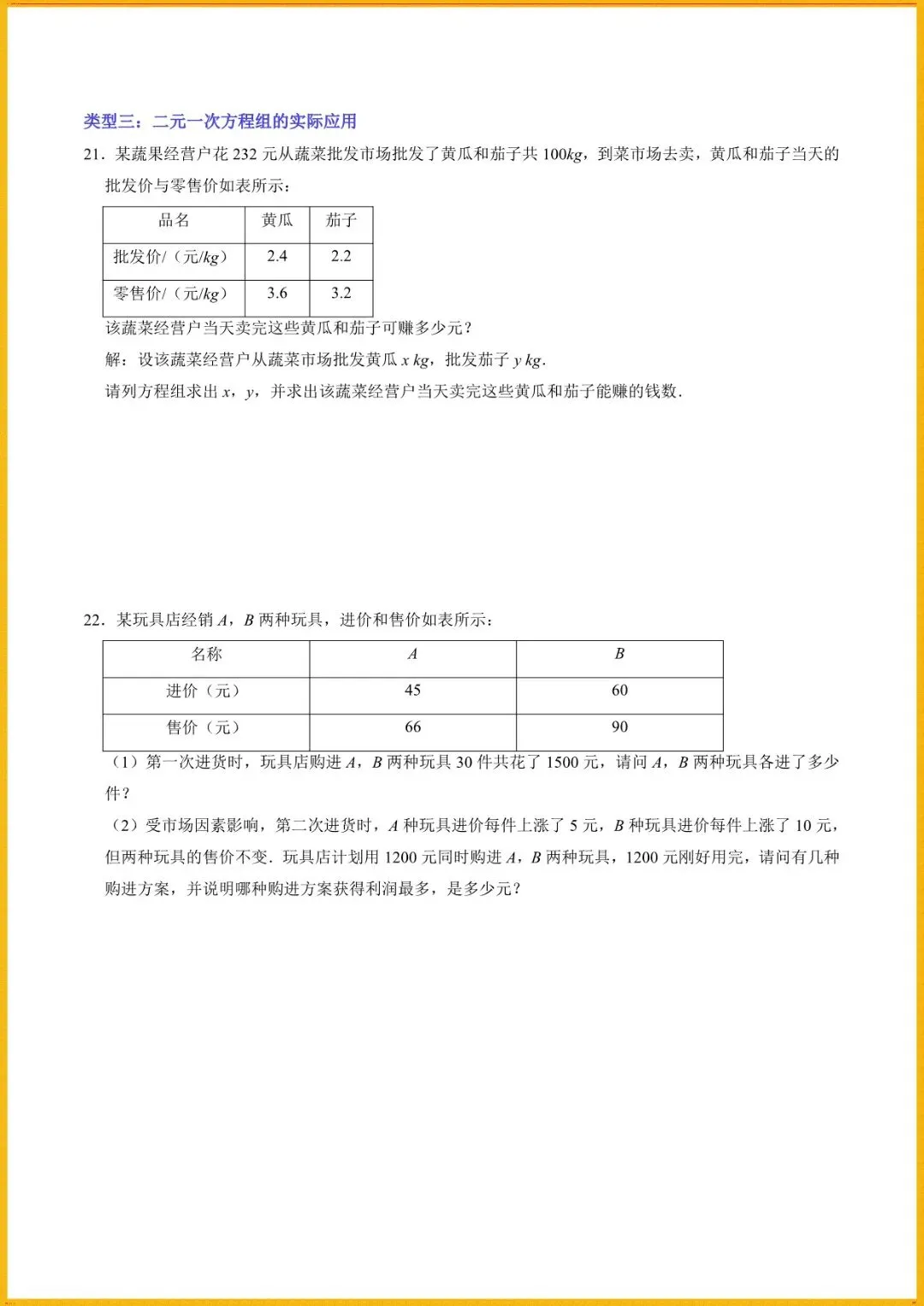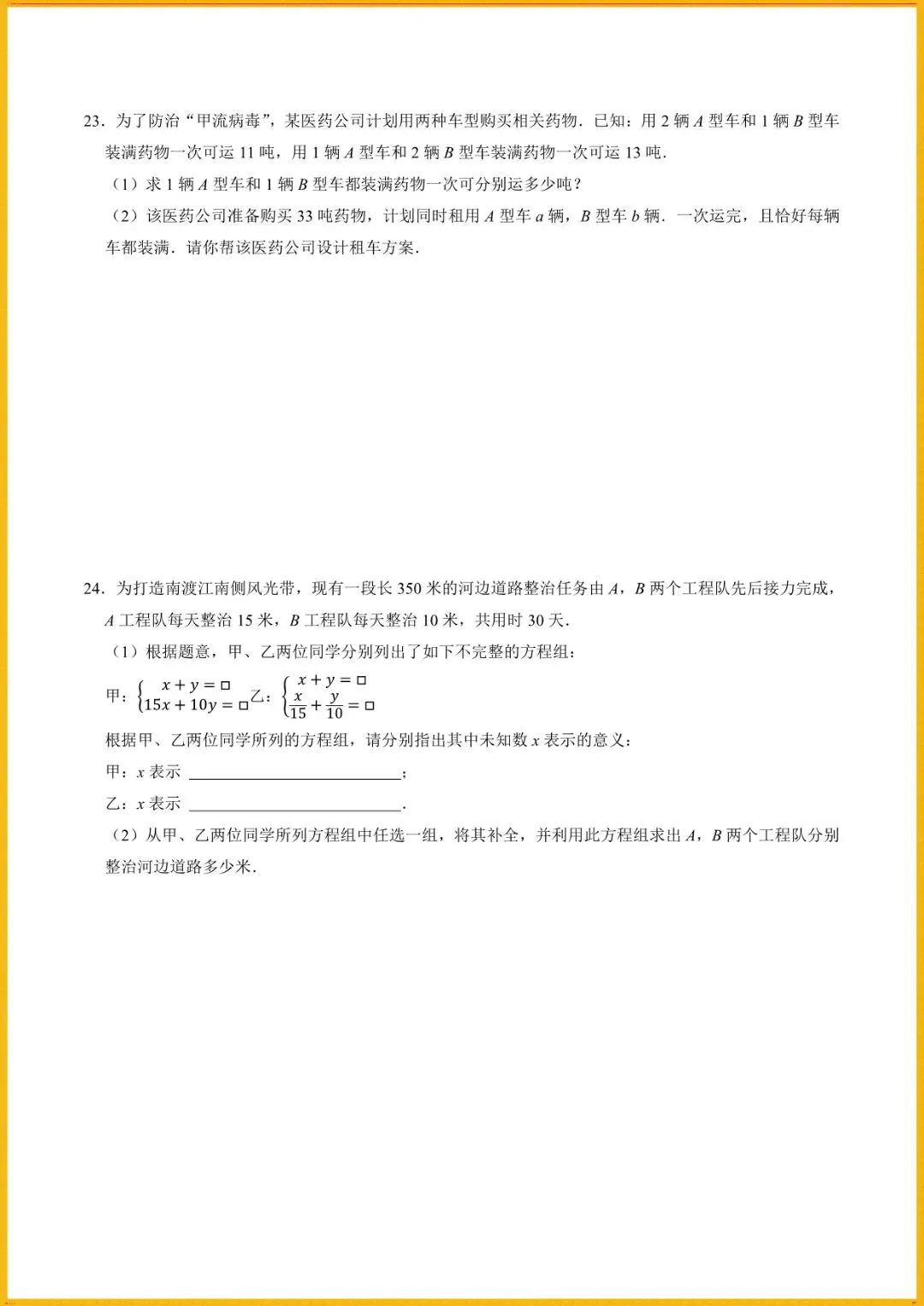 【寒假预习开学必备】七下数学人教版寒假讲义专题1解一元一次方程组与实际应用(学生+教师版)电子版可直接使用!
