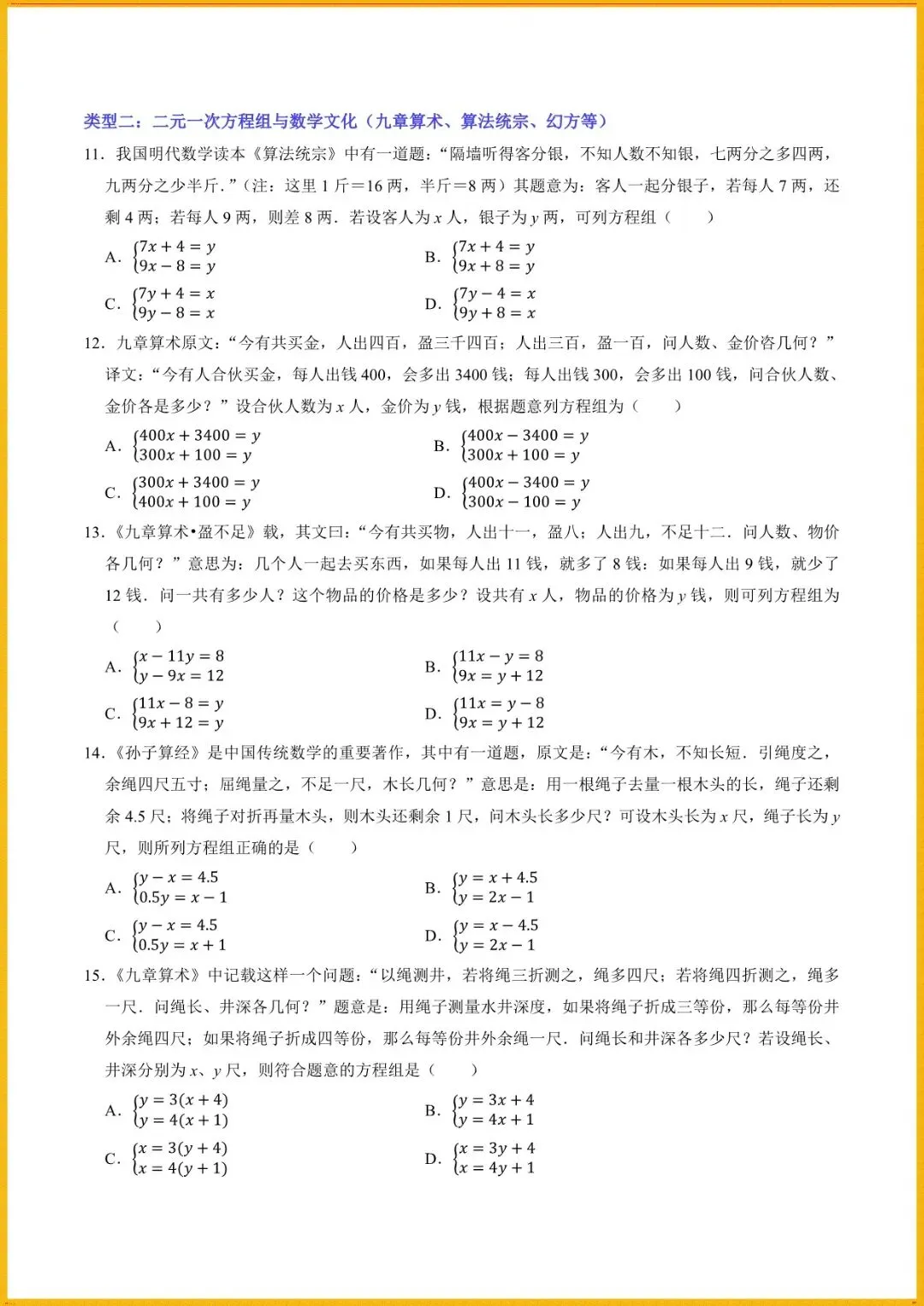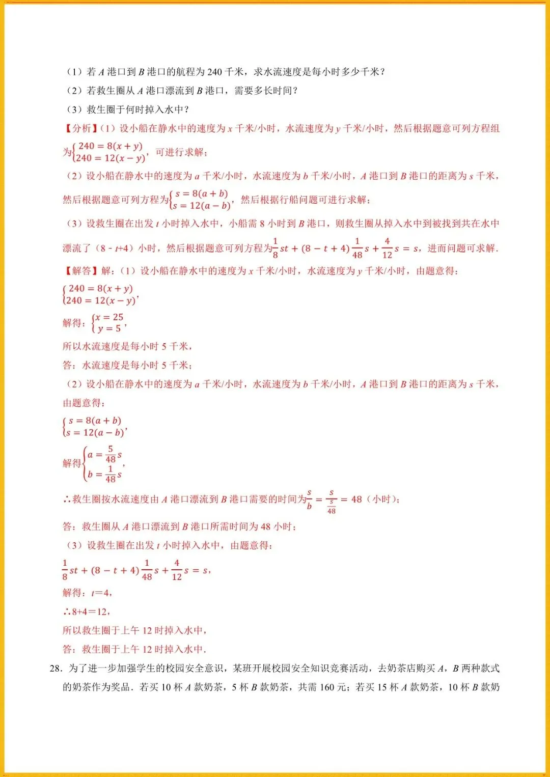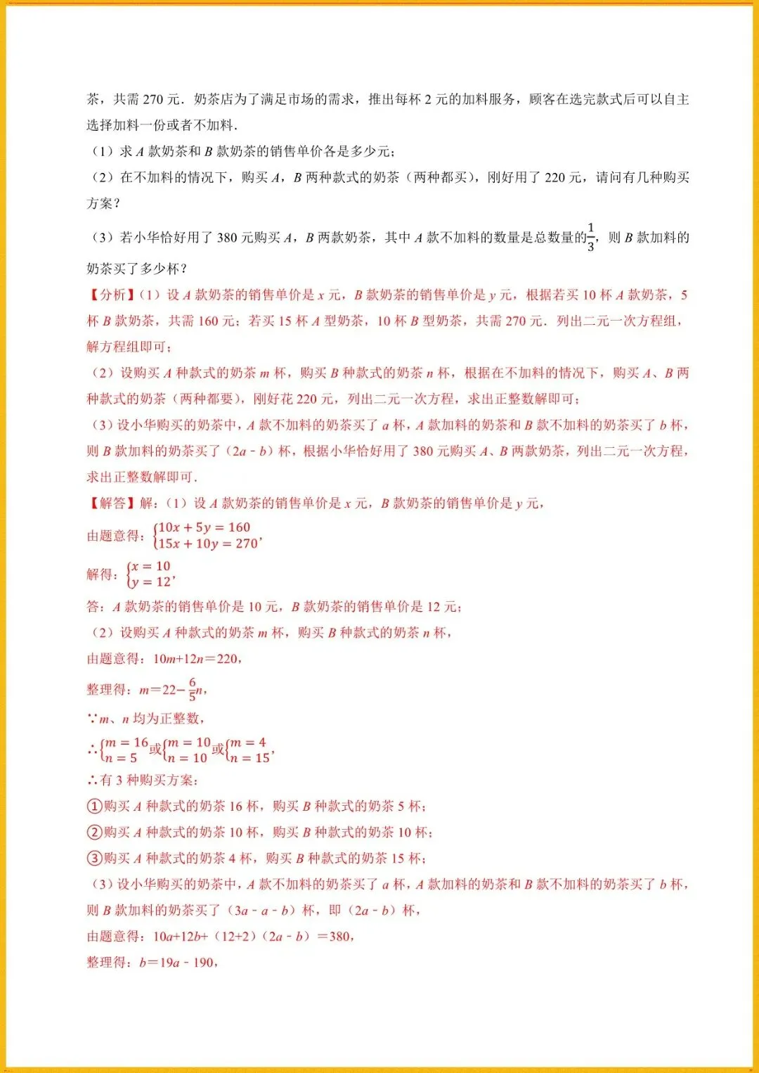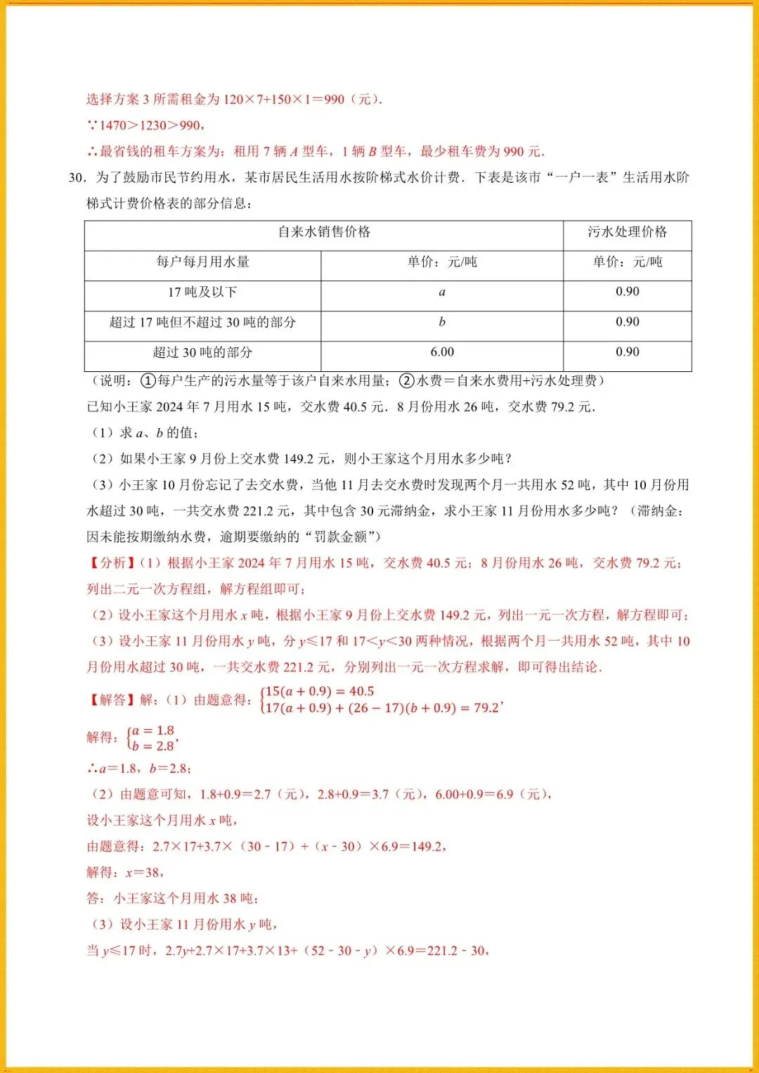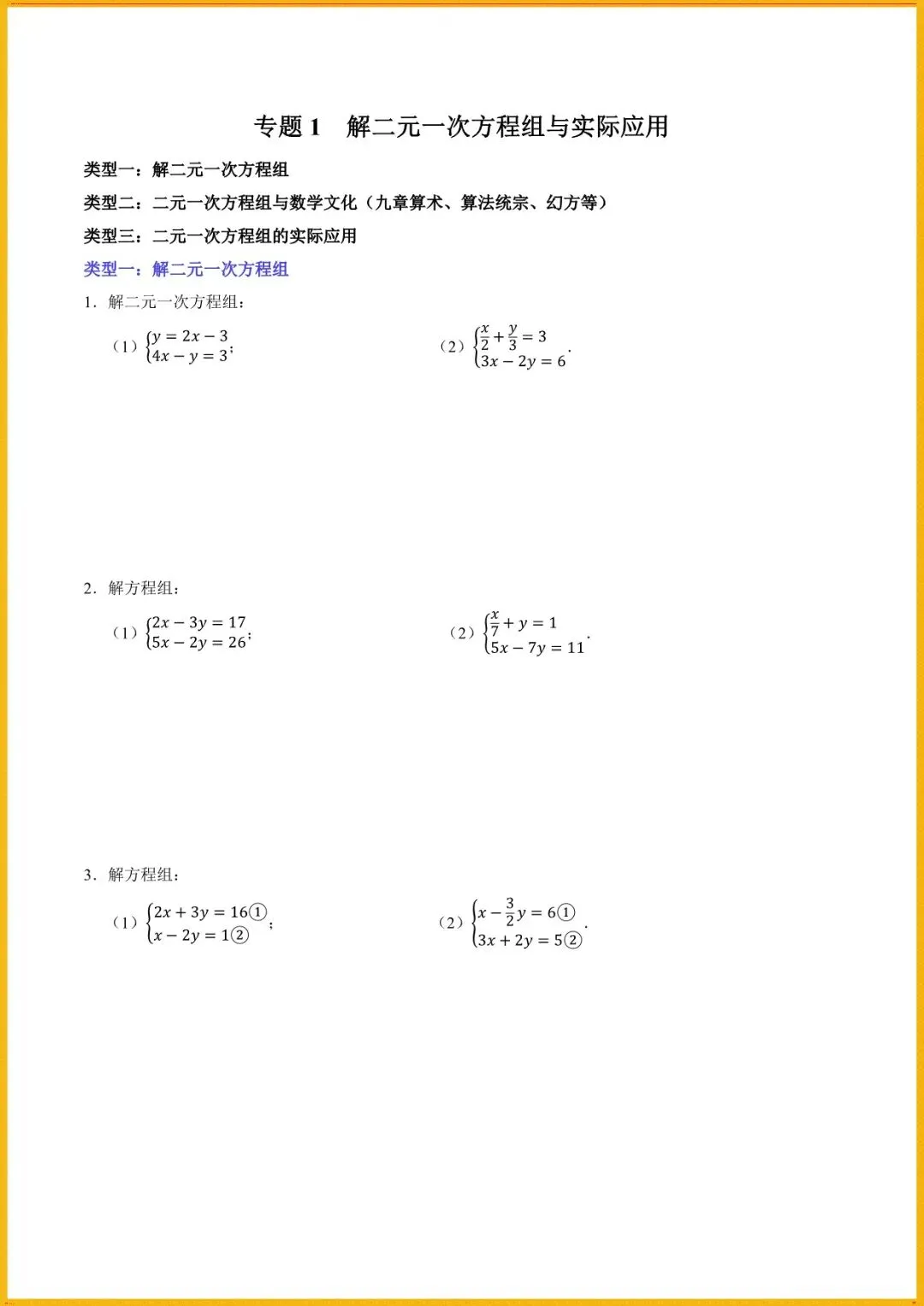 【寒假预习开学必备】七下数学人教版寒假讲义专题1解一元一次方程组与实际应用(学生+教师版)电子版可直接使用!