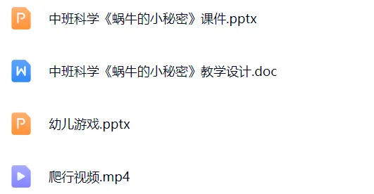 通过网盘分享的文件:中班科学《蜗牛的小秘密》视频+教案+课件+音乐