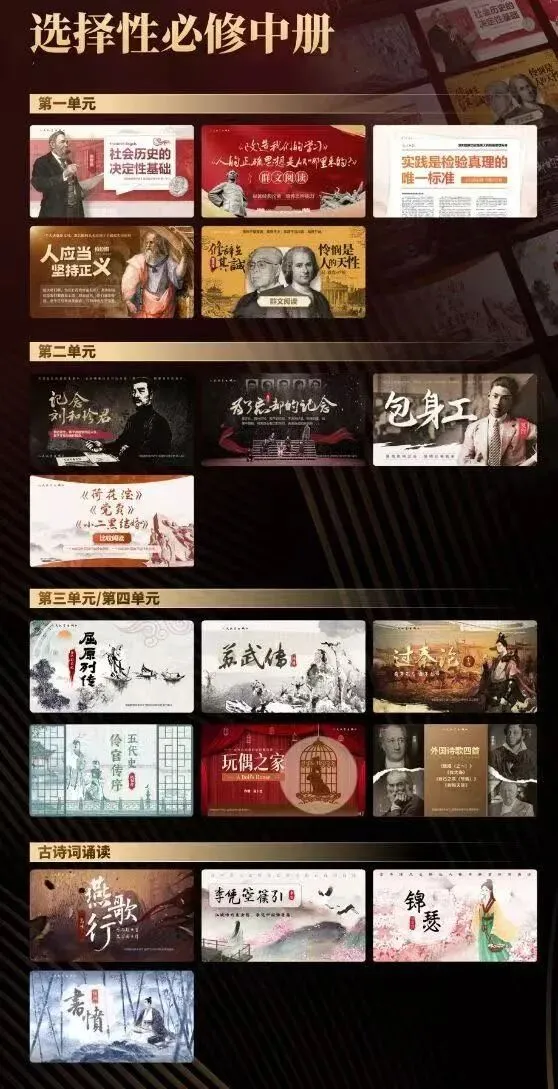 目前为止,统编版高中语文教材已经有5册与大家见面,其中必修教材分上、下2册,选择性必修教材分上、中、下3册。
