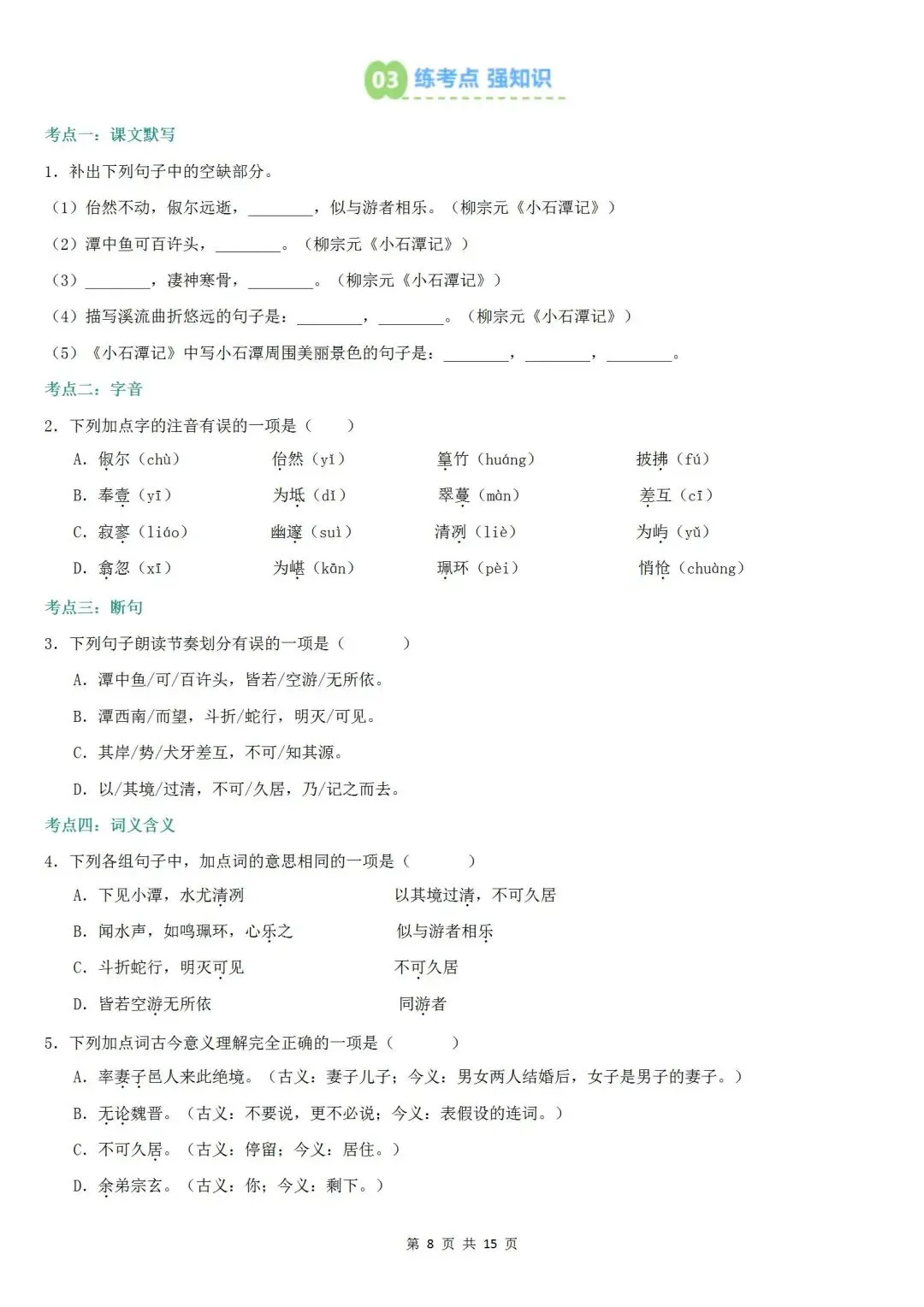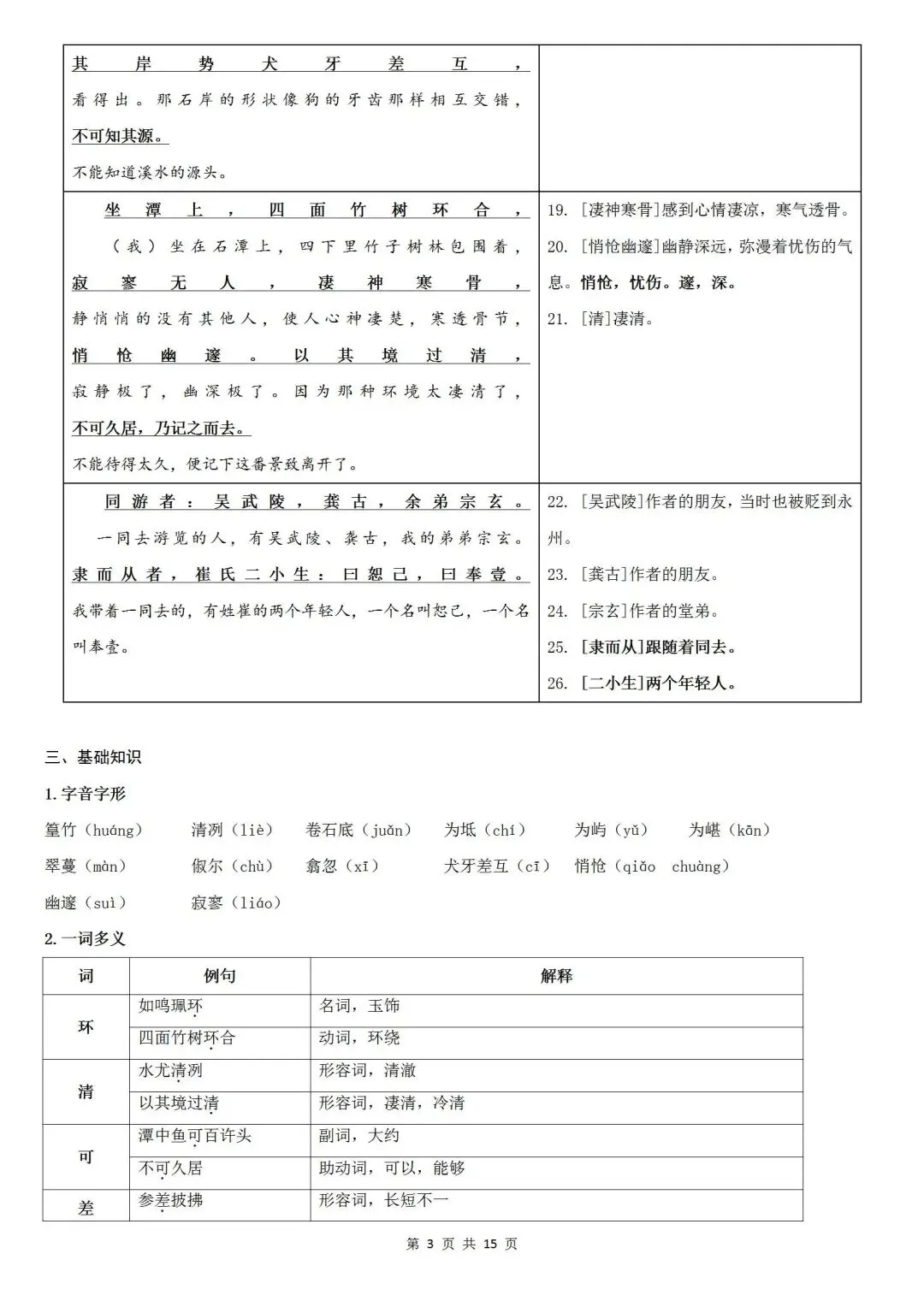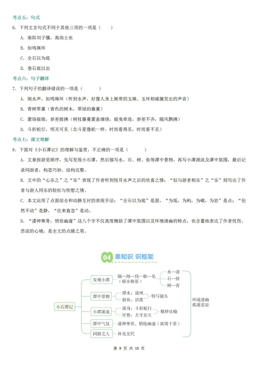 【答案】本文以作者的行踪为线索。背诵可按发现小石潭—潭中景物—小石潭源流—潭中气氛这样的顺序来记忆。