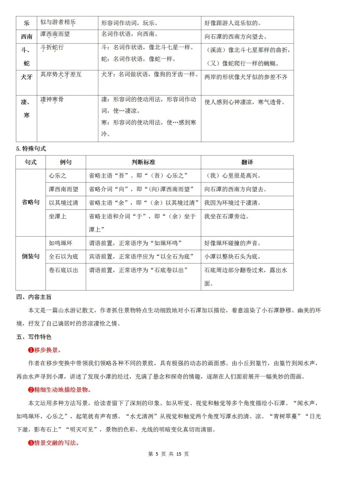 本文是一篇山水游记散文,作者抓住景物特点生动细致地对小石潭加以描绘,着意渲染了小石潭静穆、幽美的环境,抒发了自己谪居时的悲凉凄怆之情。