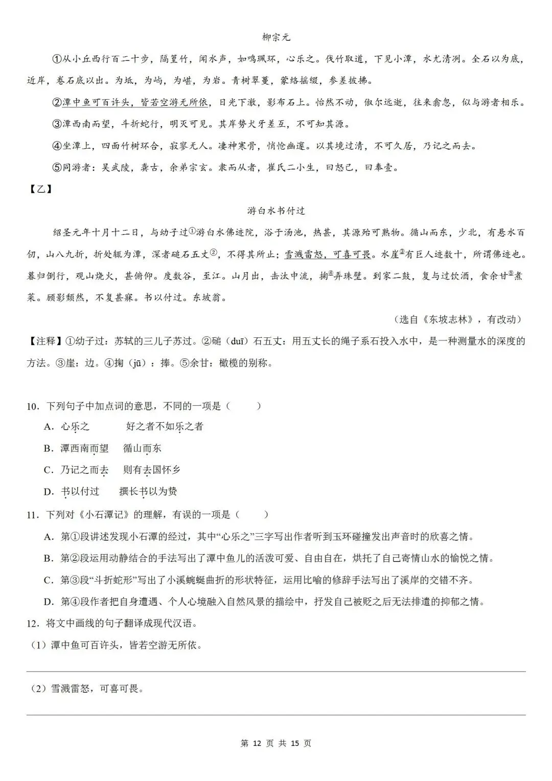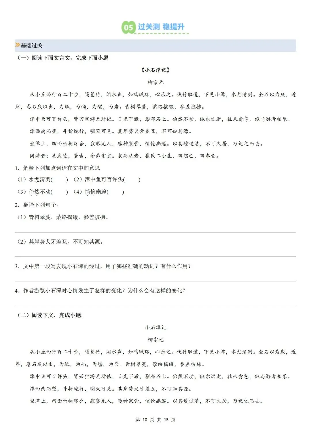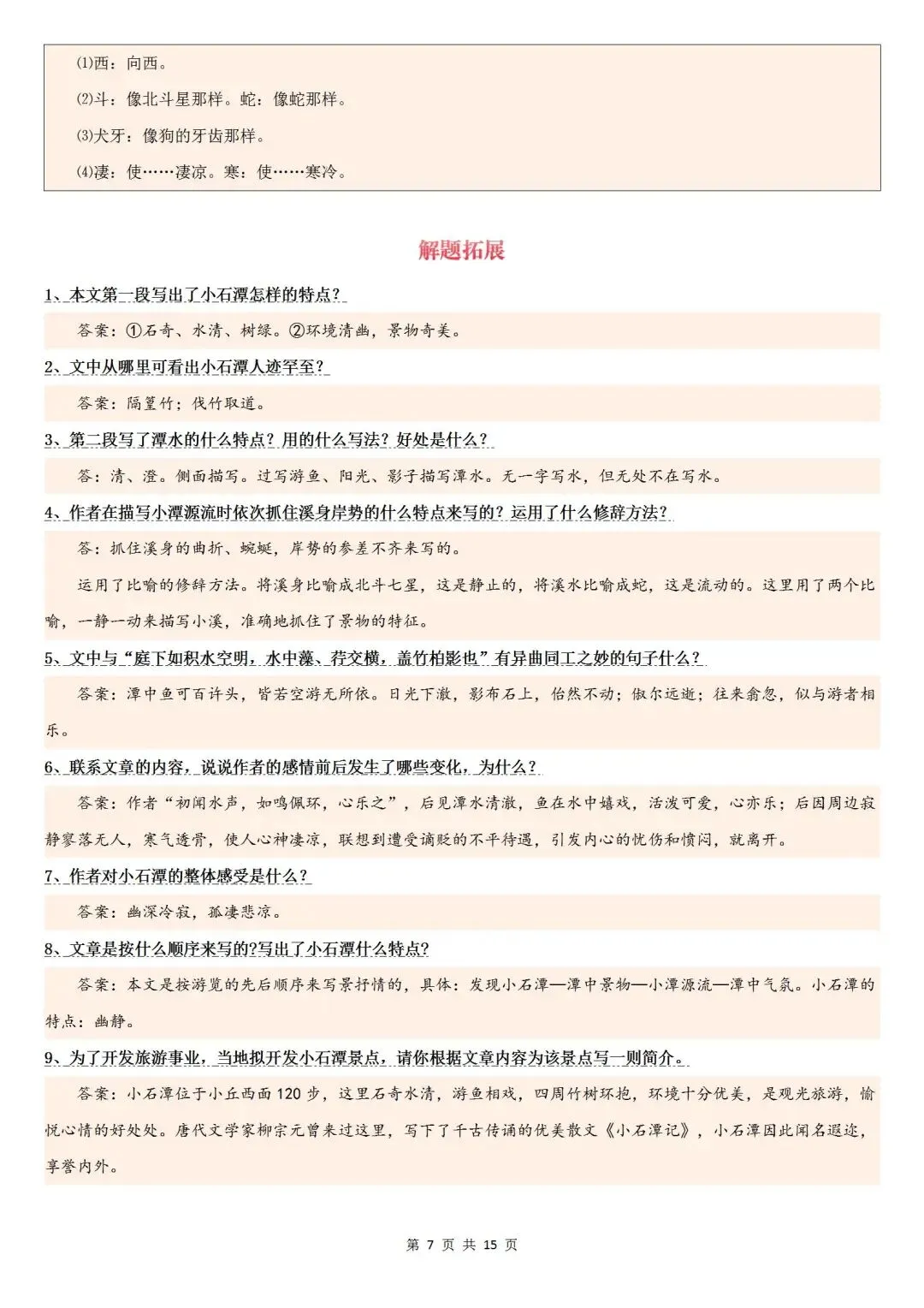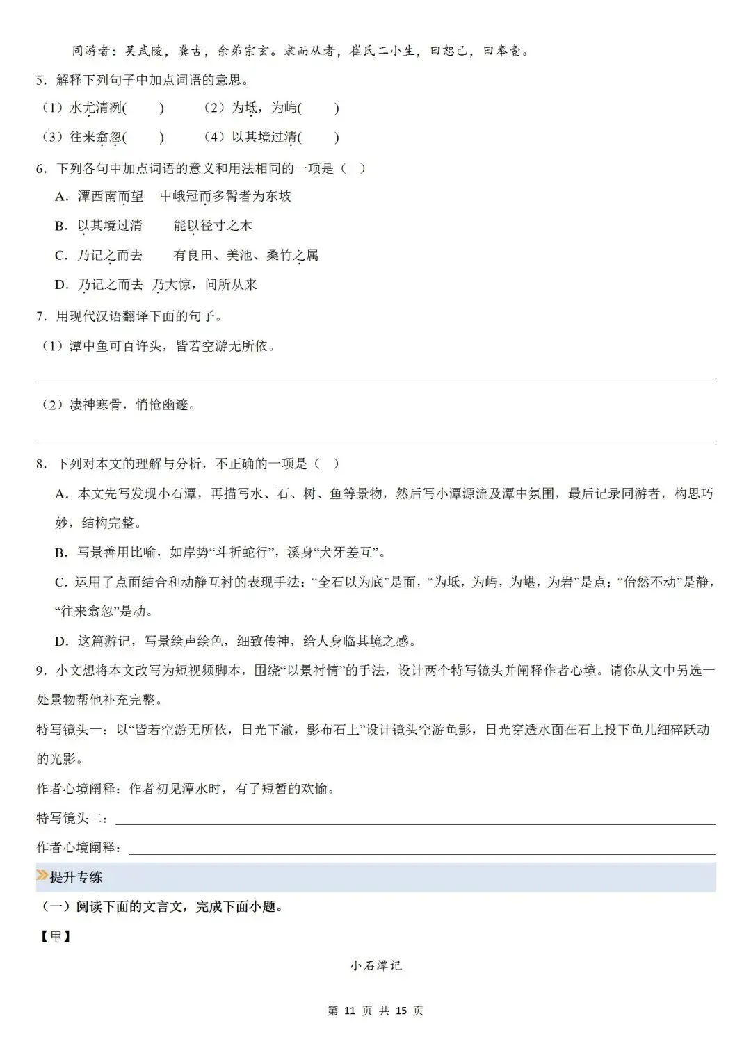 9、为了开发旅游事业,当地拟开发小石潭景点,请你根据文章内容为该景点写一则简介。