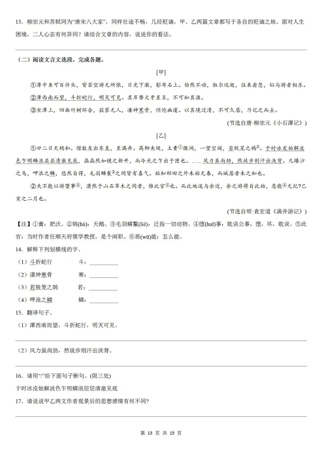 答案:作者“初闻水声,如鸣佩环,心乐之”,后见潭水清澈,鱼在水中嬉戏,活泼可爱,心亦乐;后因周边寂静寥落无人,寒气透骨,使人心神凄凉,联想到遭受谪贬的不平待遇,引发内心的忧伤和愤闷,就离开。