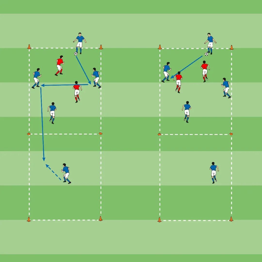 • 在半场进行4对2