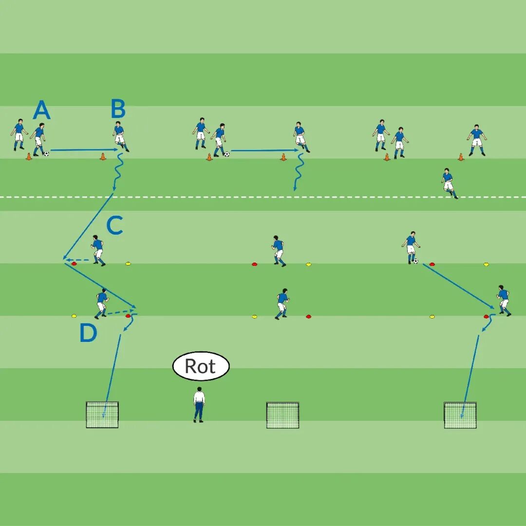 • 通过紧密的盘带始终将球控制在脚下。准确性优先于速度!