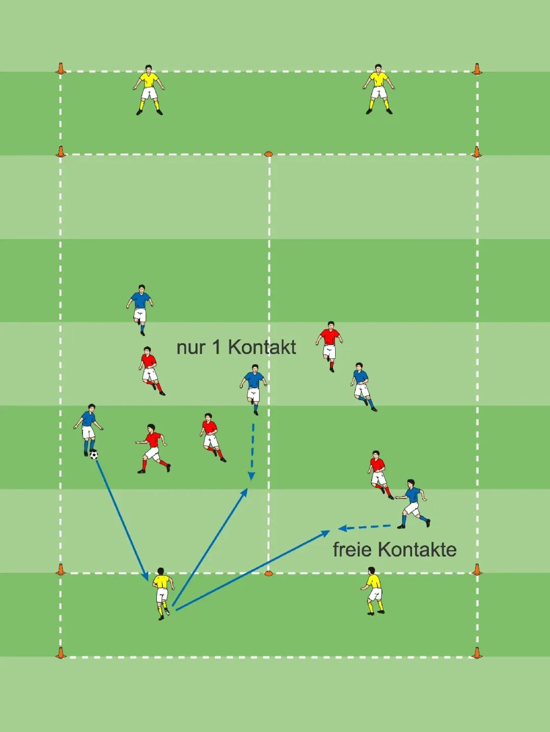 • 目标是通过传球(= 1分)或盘带(= 2分)将球转移到另一半场。