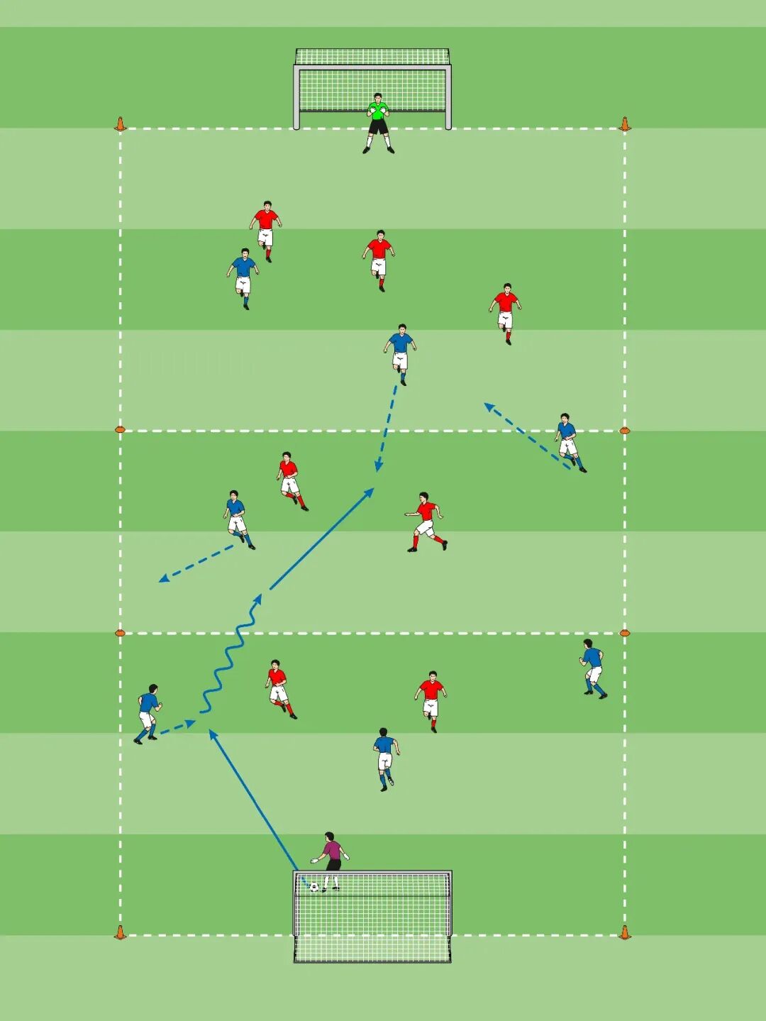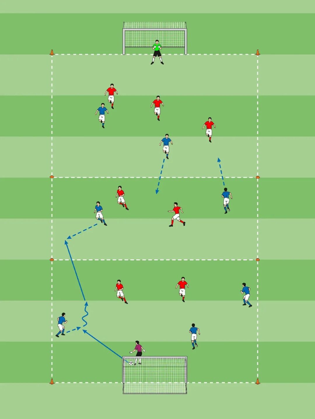 • 1名蓝队控球方球员站在另一半场。