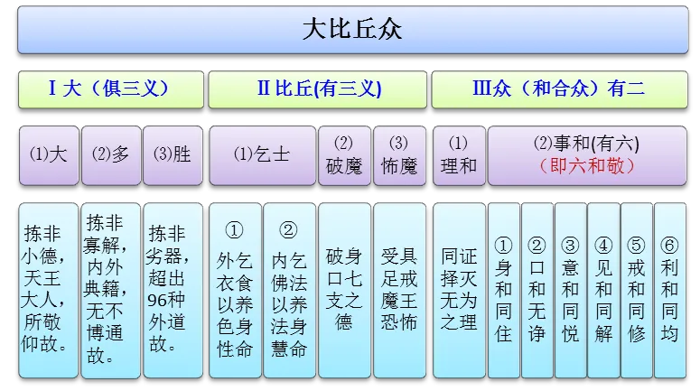 这些大比丘僧“皆是”已证圣道,离欲“无漏”,烦恼永息之“大阿罗汉”,“佛”之真“子”,安“住”护“持”如来正法,自身“善”修如来无量妙法而得“超”脱三界二十五有等“诸有”系缚,并且“能于”此娑婆“国土”(乃至十方佛土),“成就”三千“威仪”,随“从佛”世尊“转”正法“轮”;并且以其所证深“妙”之智慧,而“堪”能绍继如来“遗嘱”之度生事业,是故彼等皆能庄“严净”持“毘尼”戒品,“弘范”于“三界”(为三界众生之师范),并能随众生之机缘,而示现“应身无量”,以“度”化解“脱”现在之“众生”于生死中,更能救“拔”赈“济”尽“未来”际无量有情,令皆超“越诸尘”劳之负“累”,而得解脱。