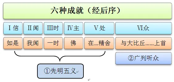 今初先明五义者:即信、闻、时、主、处五义,加听众则六种成就,