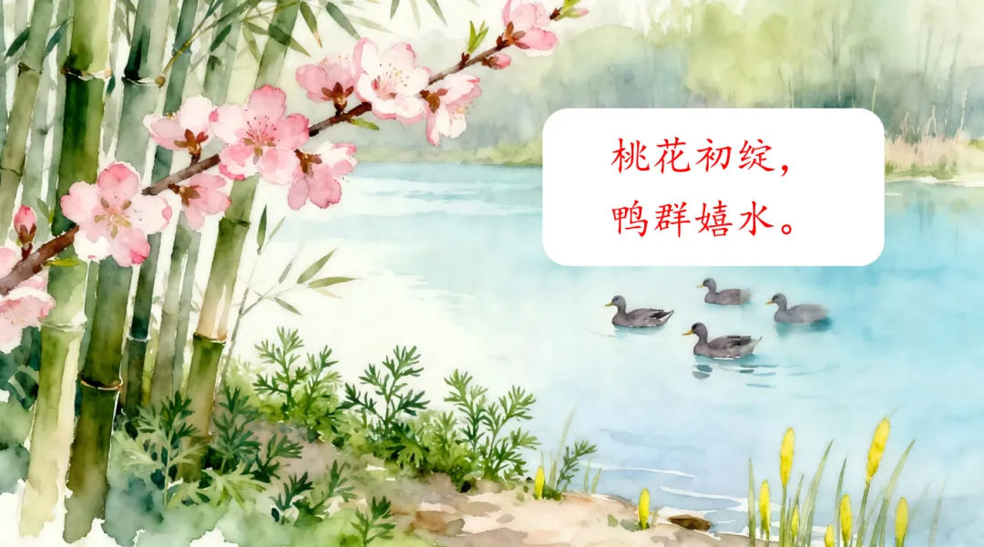 苏轼让我们看到了——桃花初绽,鸭群嬉水的早春生机;