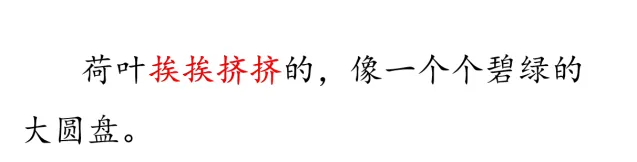 师:是啊,“挨挨挤挤”这个词,赋予了荷叶蓬勃的、旺盛的生命力,荷叶就像活了起来一样。你能读出这种感觉吗?——