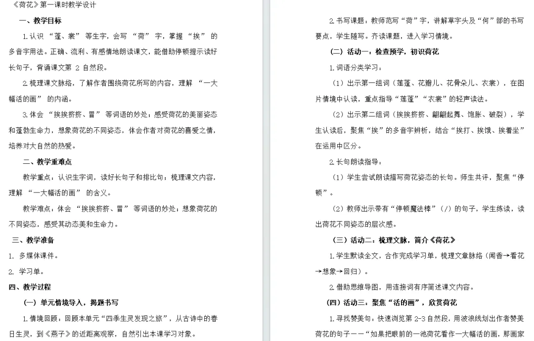 《荷花》第一课时逐字稿(教学实录)