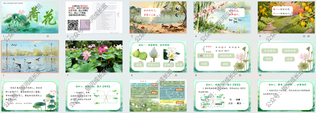 师:你的朗读让我感受到了这荷花特别茂盛,充满了生命的力量。我们一起读——