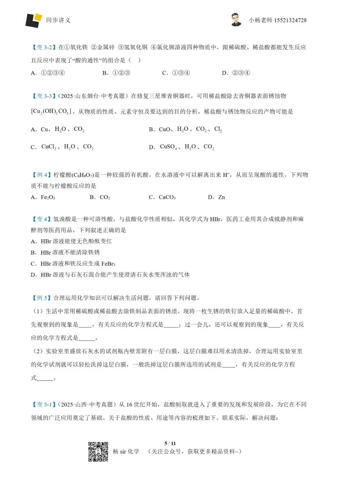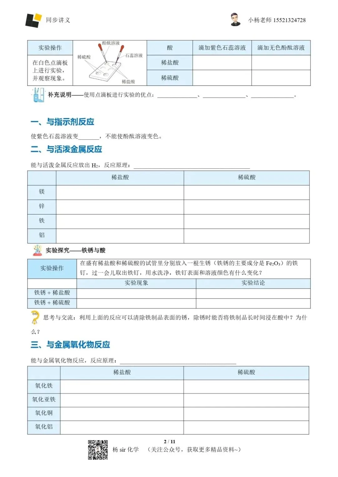 >1002-2 《酸的化学性质》word讲义(学生版)