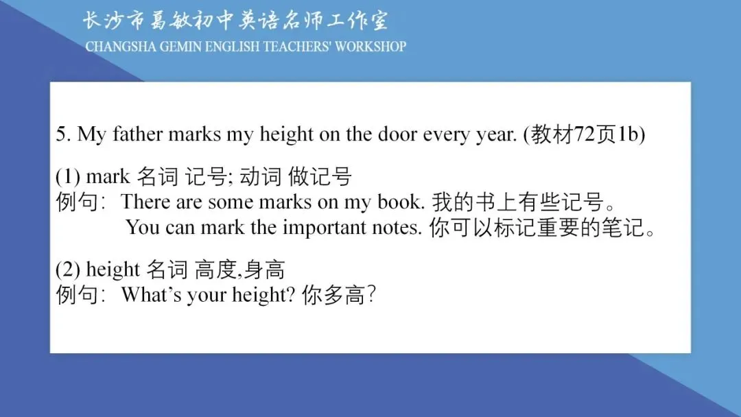 长沙市葛敏初中英语工作室系列原创资源为工作室老师们原创设计与制作,版权归作者本人所有。请勿用于公开课或者教学参赛,请勿商业用途,请勿二次传播,请勿自己上传至网络!仅限于个人常规课使用。