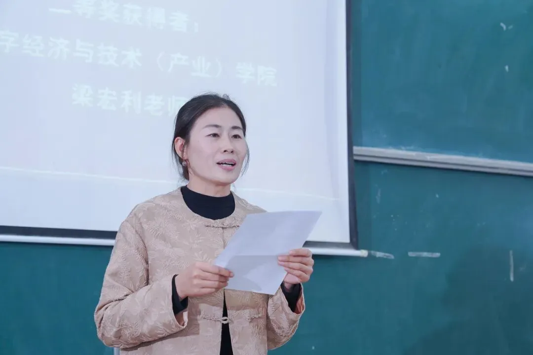颁奖结束后,此次教案一等奖获得者艺术设计学院教师杜玥及二等奖获得者数字经济与技术(产业)学院教师梁宏利分别上台发表获奖感言。两位教师分享了自己在教学设计、教案编写过程中的心得与体会,表达了对学校、同事及学生的感激之情,并表示将继续努力,不断提升自己的教学水平,为学校的发展贡献自己的力量。
