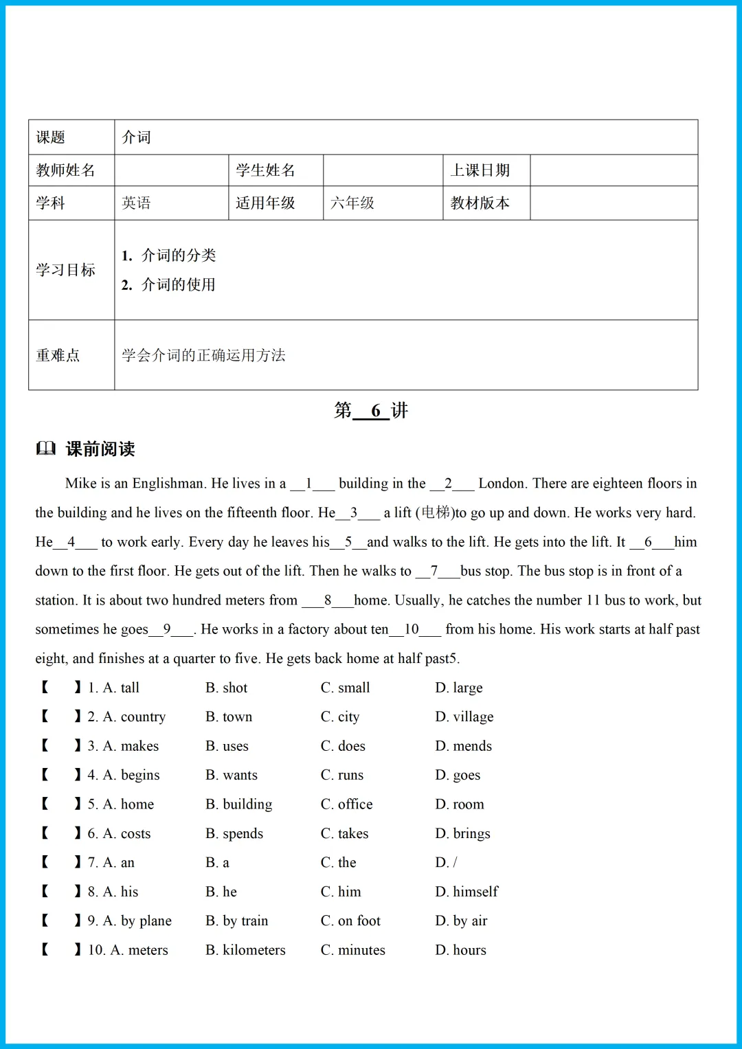 (六年级下——寒假预习讲义)第1讲 Unit 1 课文预习&语法预习