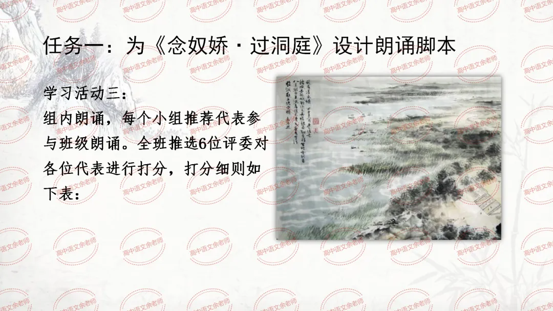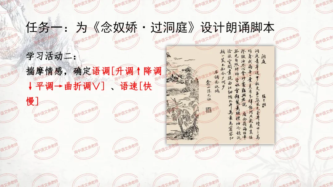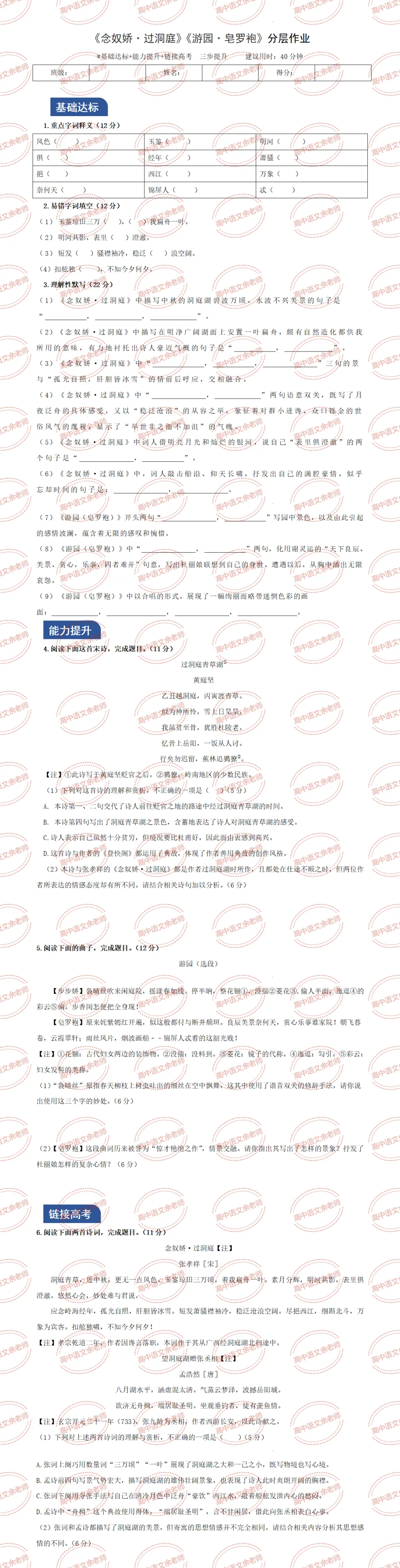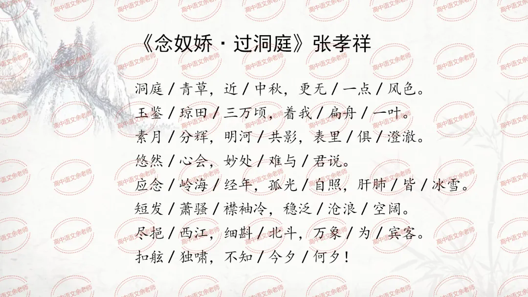 >《念奴娇·过洞庭》《游园·皂罗袍》教案设计及课件PPT 导学案 分层作业 【适配高中语文 必修下册】教师备课