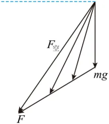 在时刻,拉力。重力、拉力与空气作用力三力平衡,构成闭合三角形。利用余弦定理可求得空。解析中给出的公式为空,因此选项 D 错误。