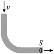 [2024 年浙江省北斗星盟竞赛(强基)联考]如图所示,在水平地面上,有一横截面为的圆弧形直角弯管,圆弧半径为。管中有流速为、密度为的水通过。由于水的流动,弯管所受力的大小为( )