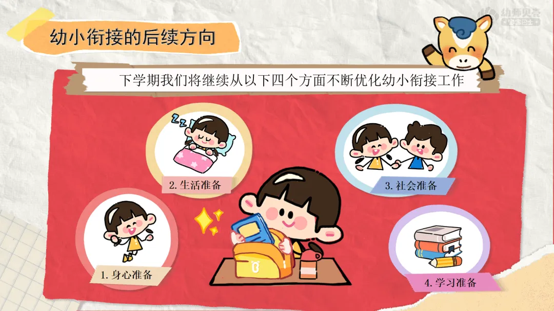 *根据PPT内容介绍本学期幼小衔接工作总结,并介绍后续工作安排。