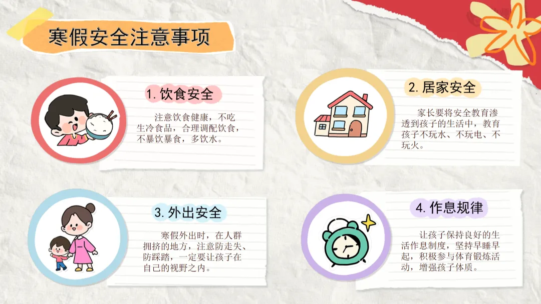 寒假期间,孩子们的安全和健康至关重要。希望家长们能够关注这些安全问题,合理安排孩子们的学习和生活,确保他们度过一个愉快、充实且安全的假期。