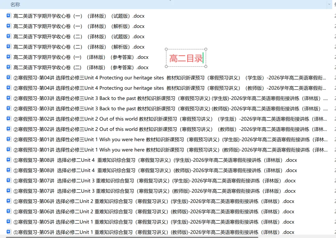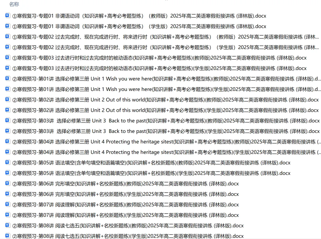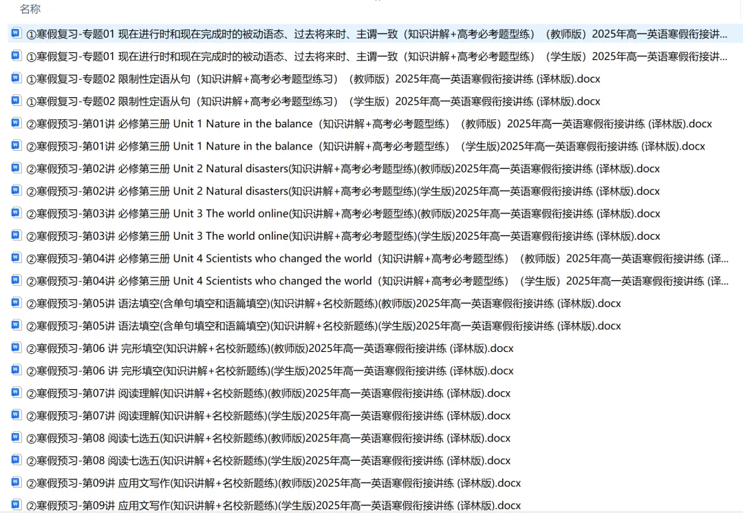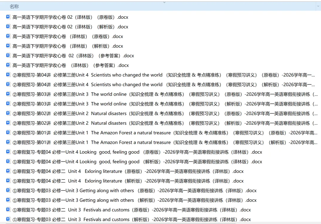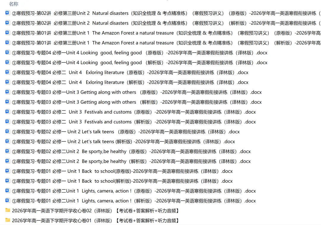寒假衔接资料以高中下册知识为核心载体,