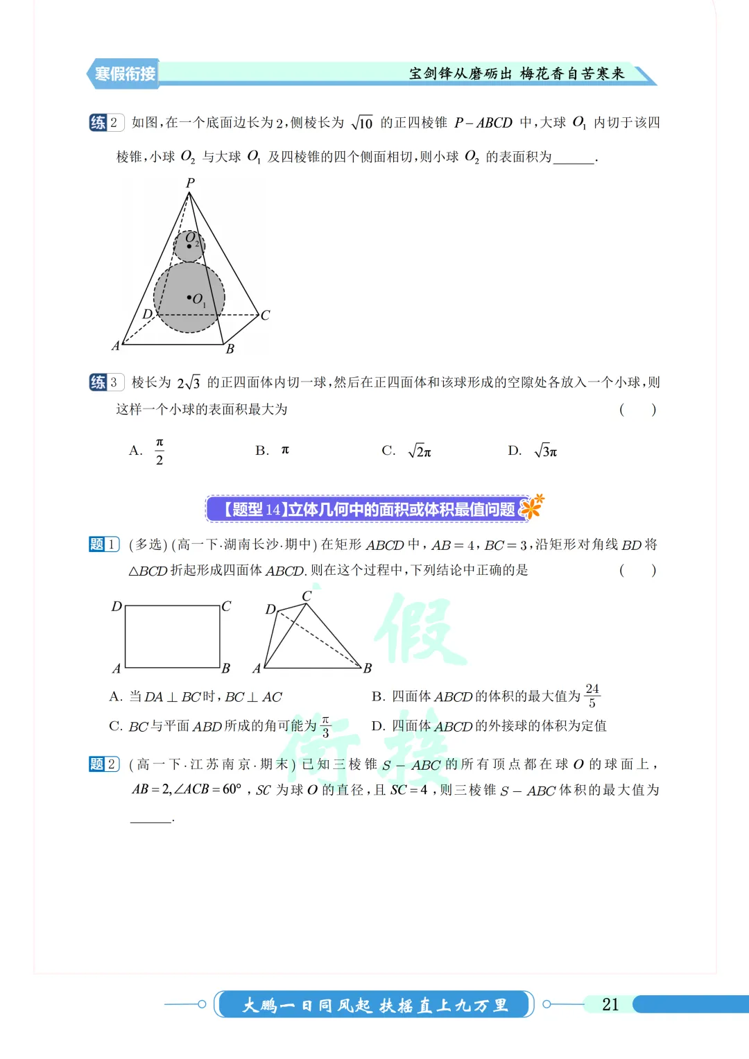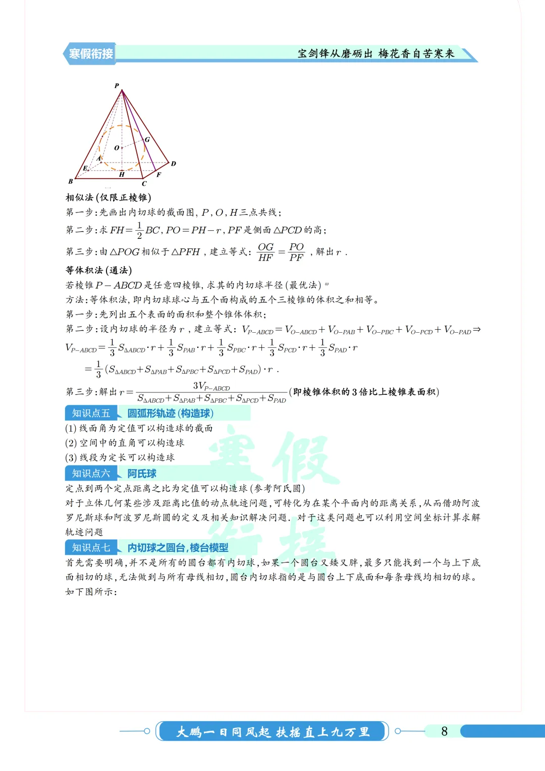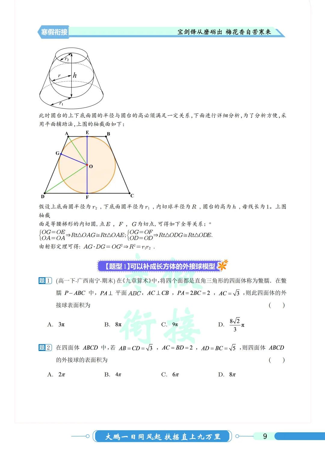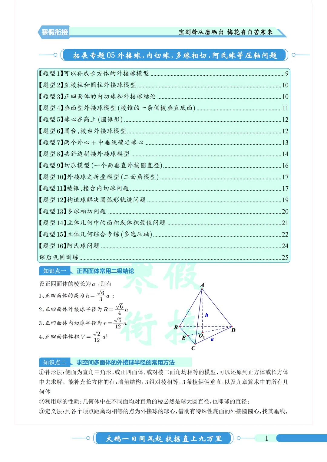 >高一寒假讲义拓展专题05 外接球,内切球,阿氏球等压轴