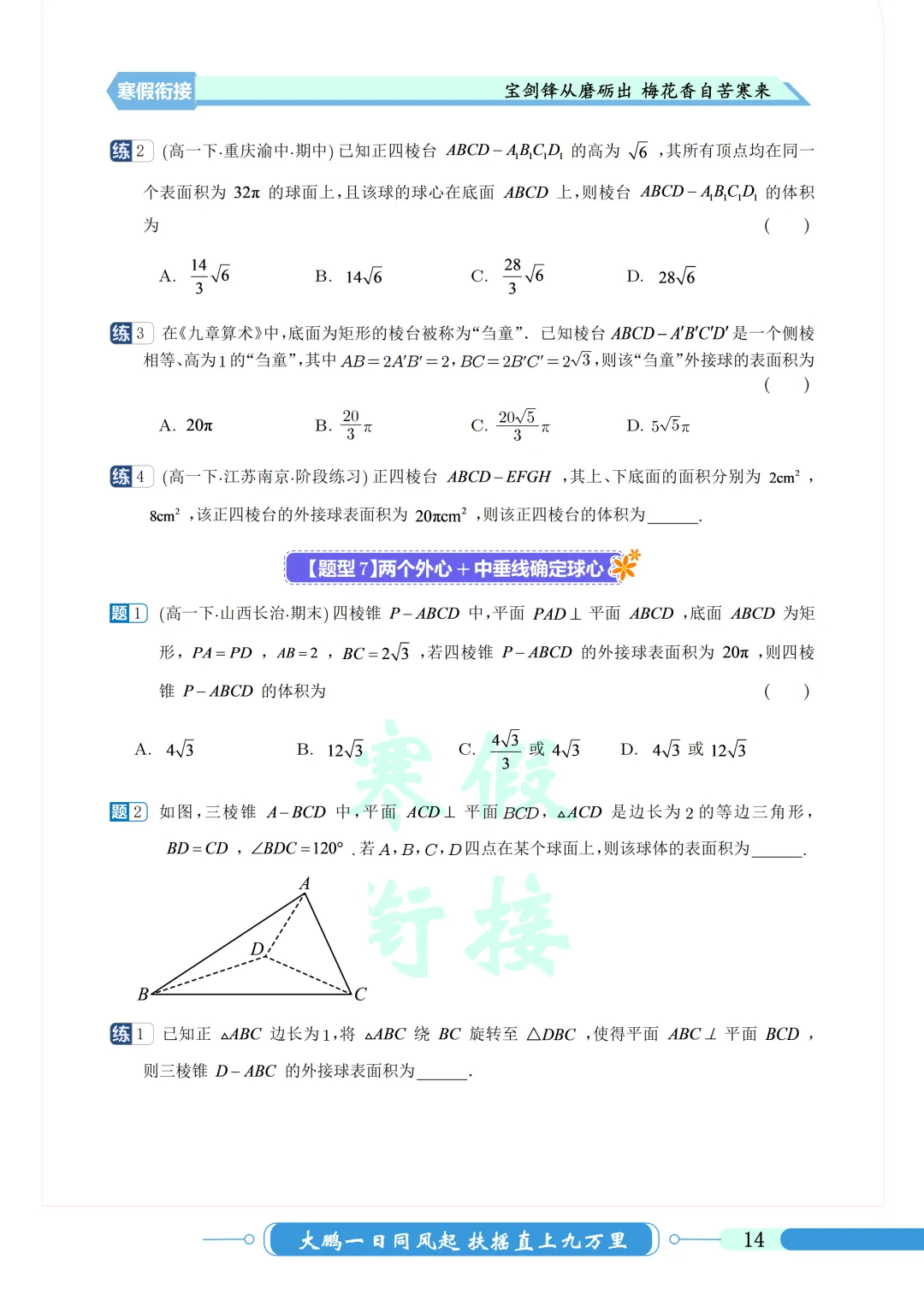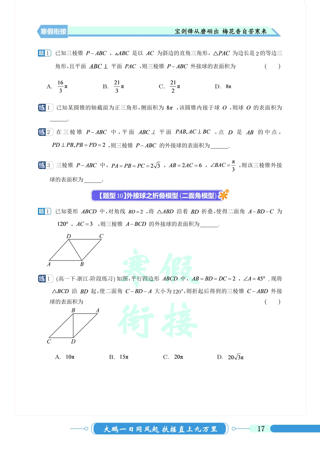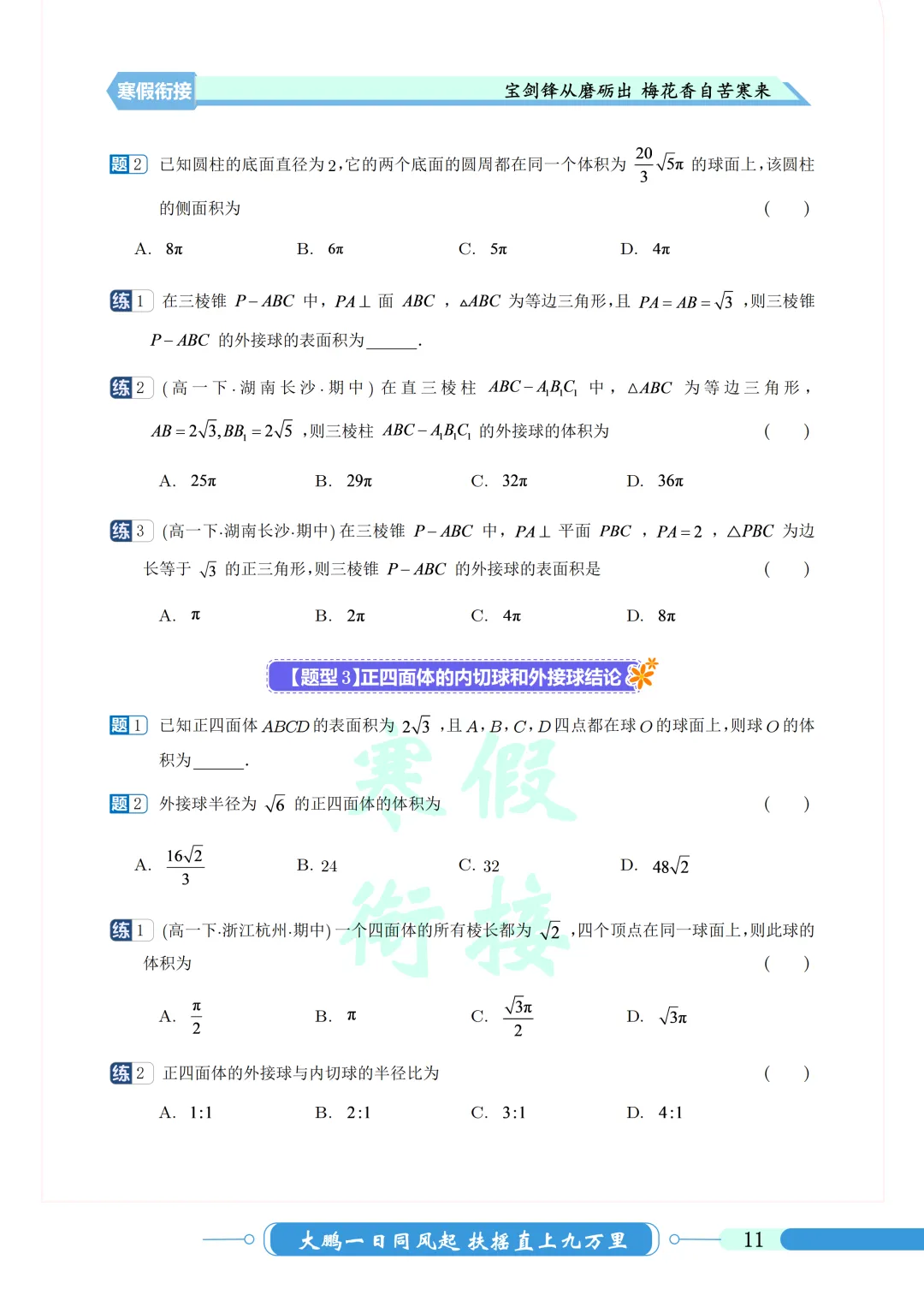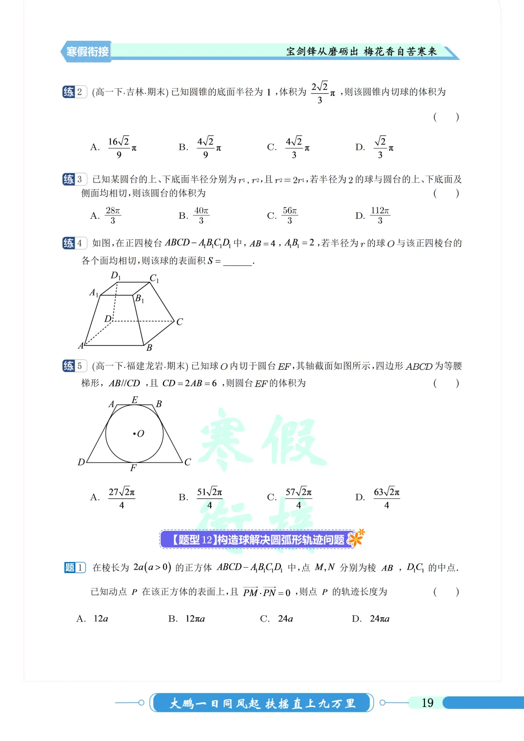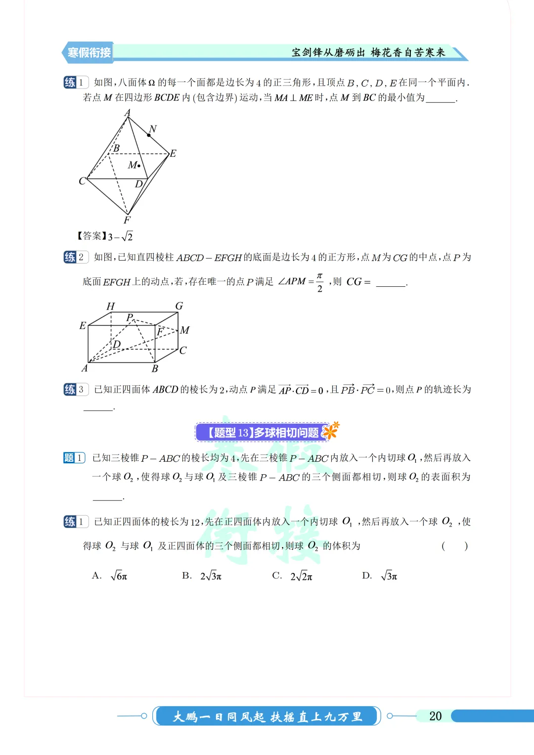 >高一寒假讲义拓展专题05 外接球,内切球,阿氏球等压轴