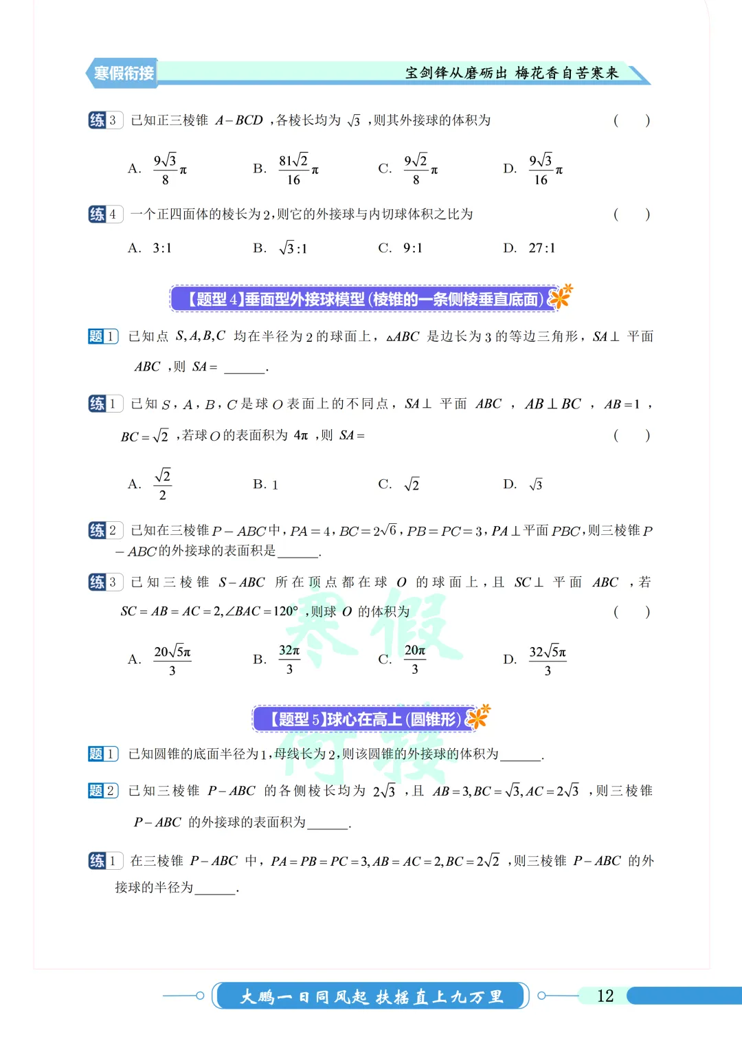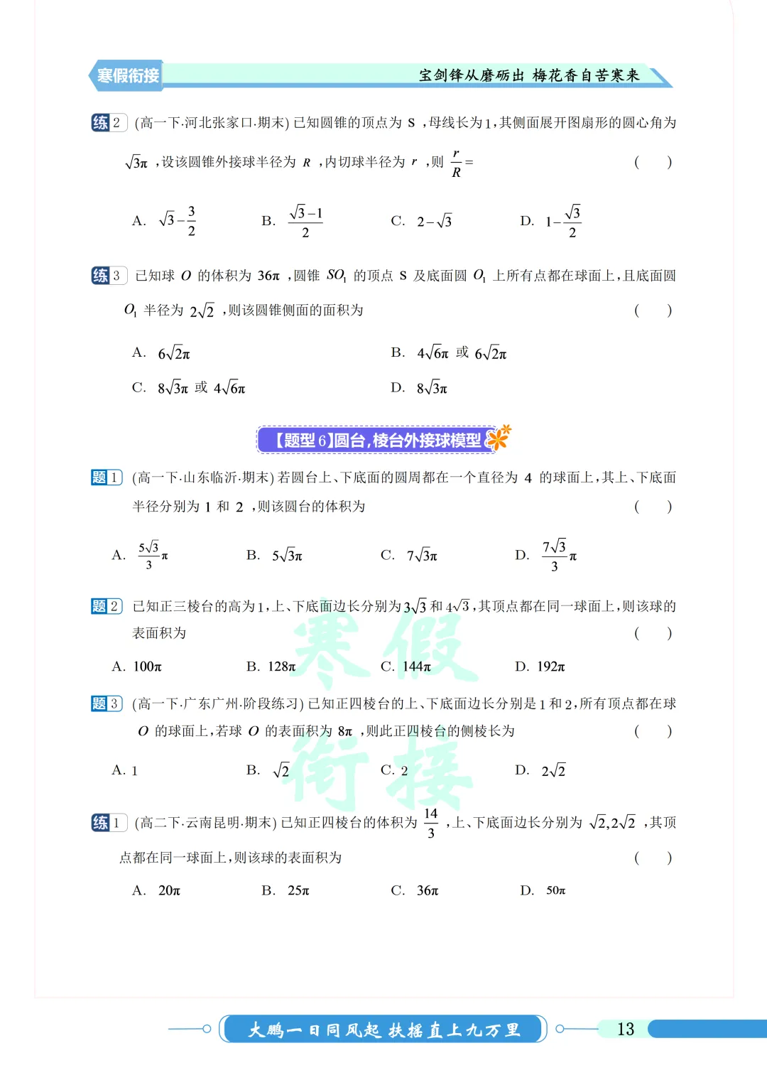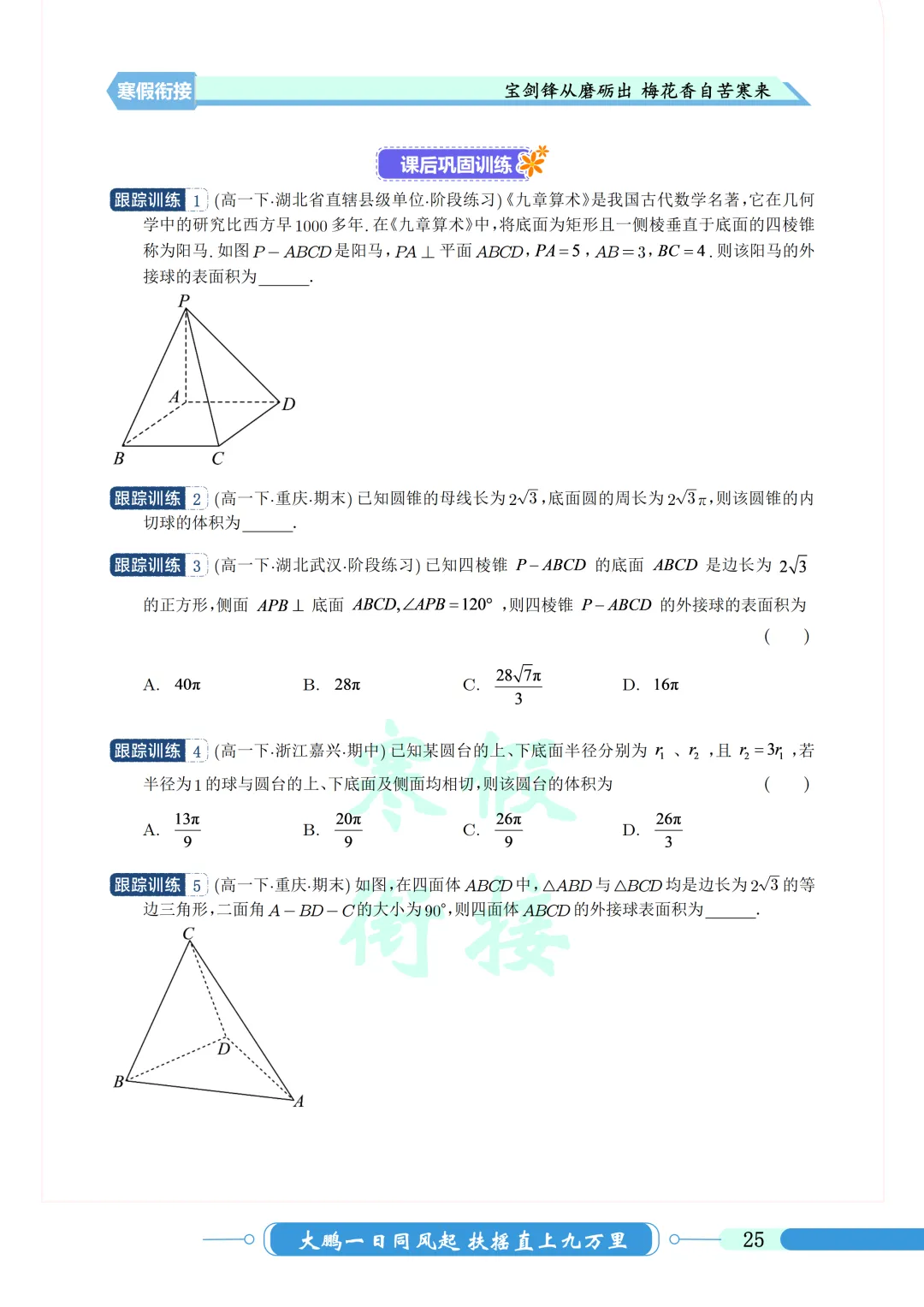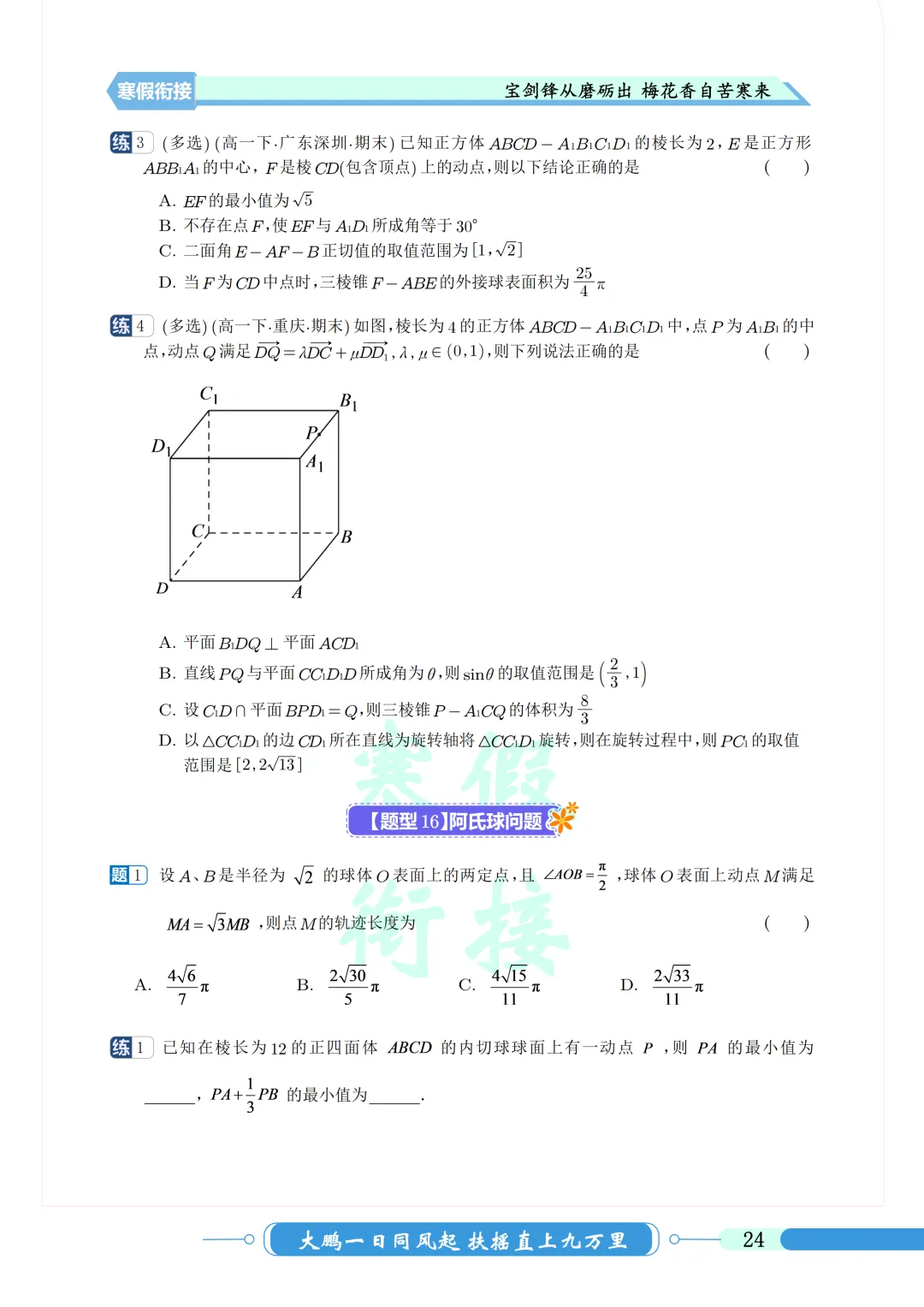 >高一寒假讲义拓展专题05 外接球,内切球,阿氏球等压轴
