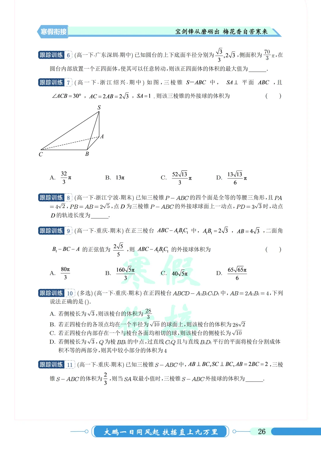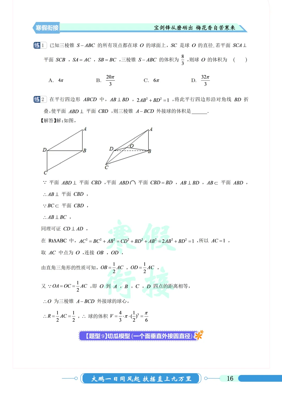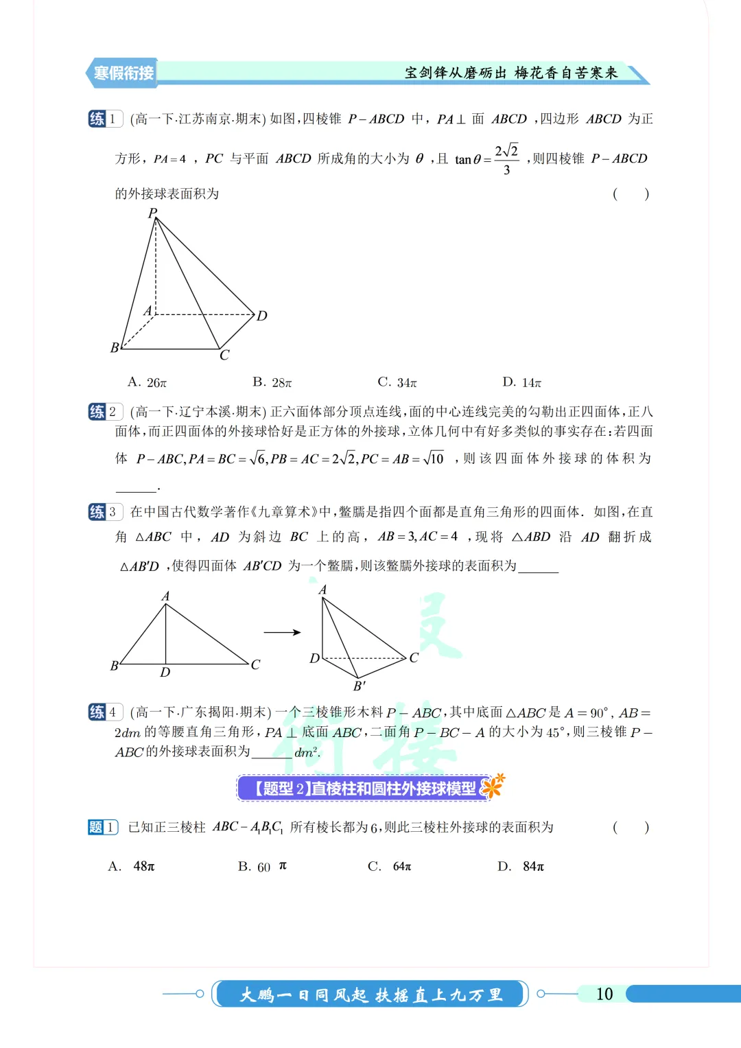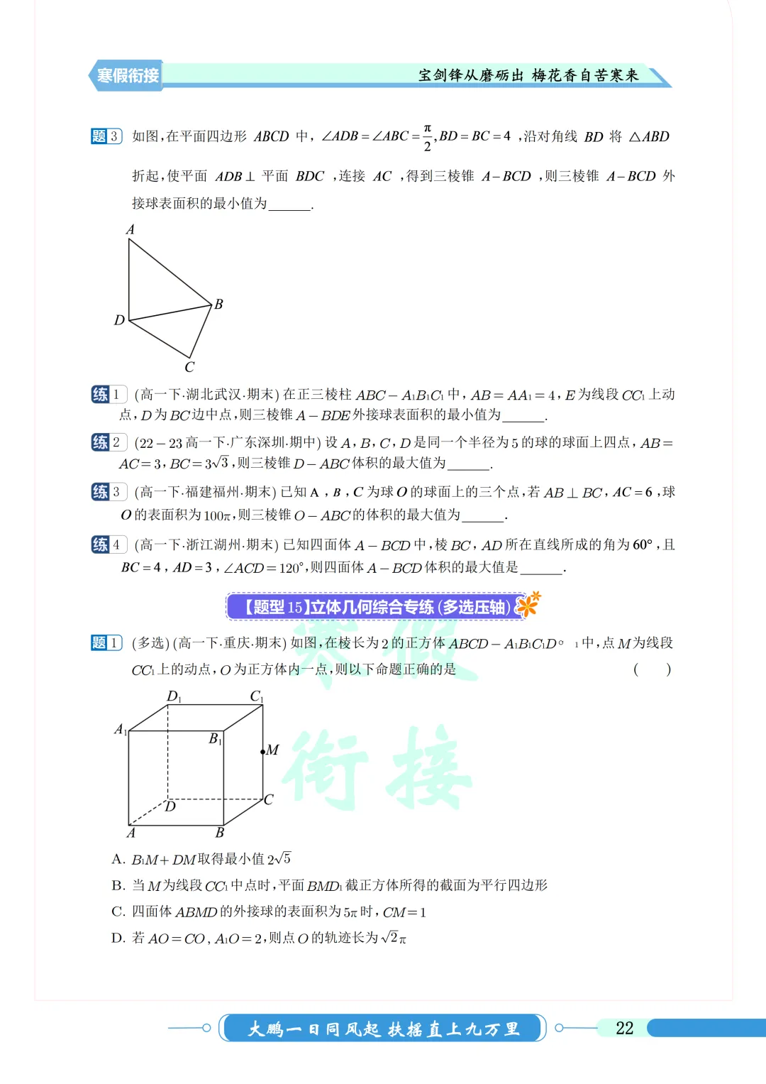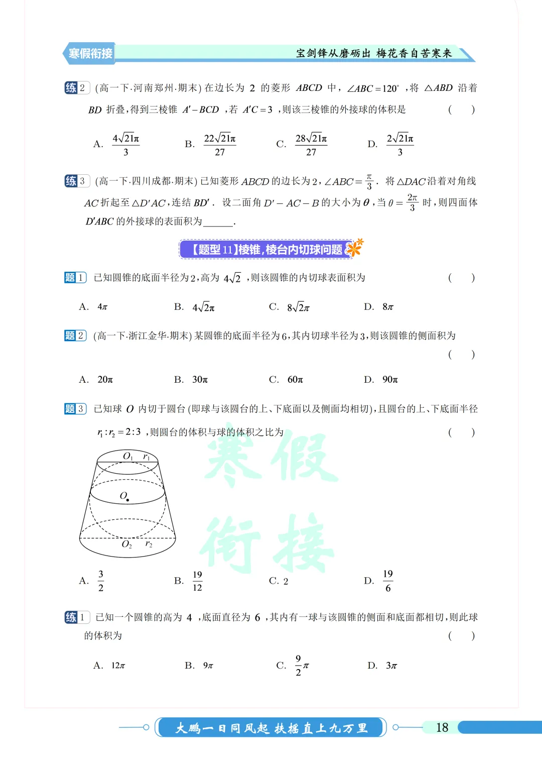>高一寒假讲义拓展专题05 外接球,内切球,阿氏球等压轴