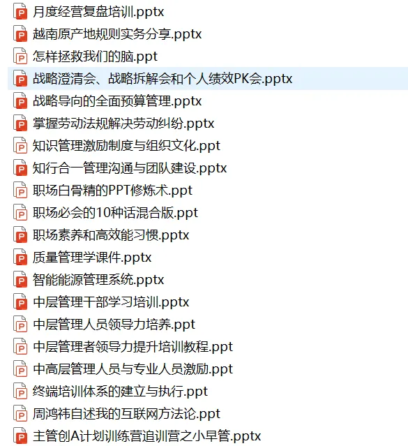 主编费时三个月时间,汇编了专栏:专栏:21G精品企业管理课件,约2500个资料课件,非常全面。目录如下: