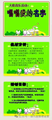 1.在演唱自己名字的过程中产生自豪感和愉悦感,体验与同伴互动演唱的快乐。(重点)