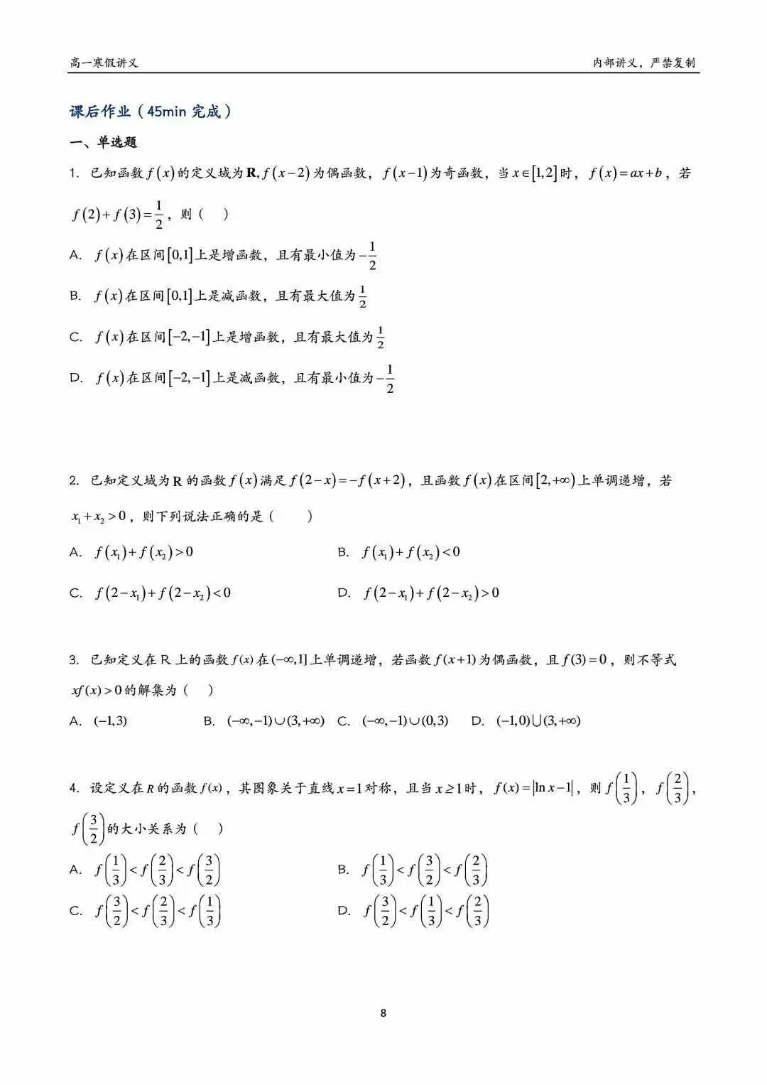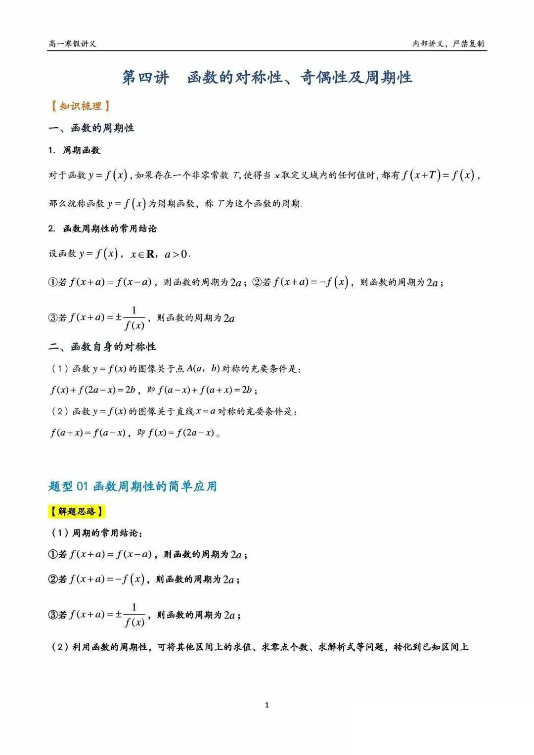 🍒高一寒假讲义内容以不等式,函数,三角函数,平面向量,解三角形为主共十六讲。