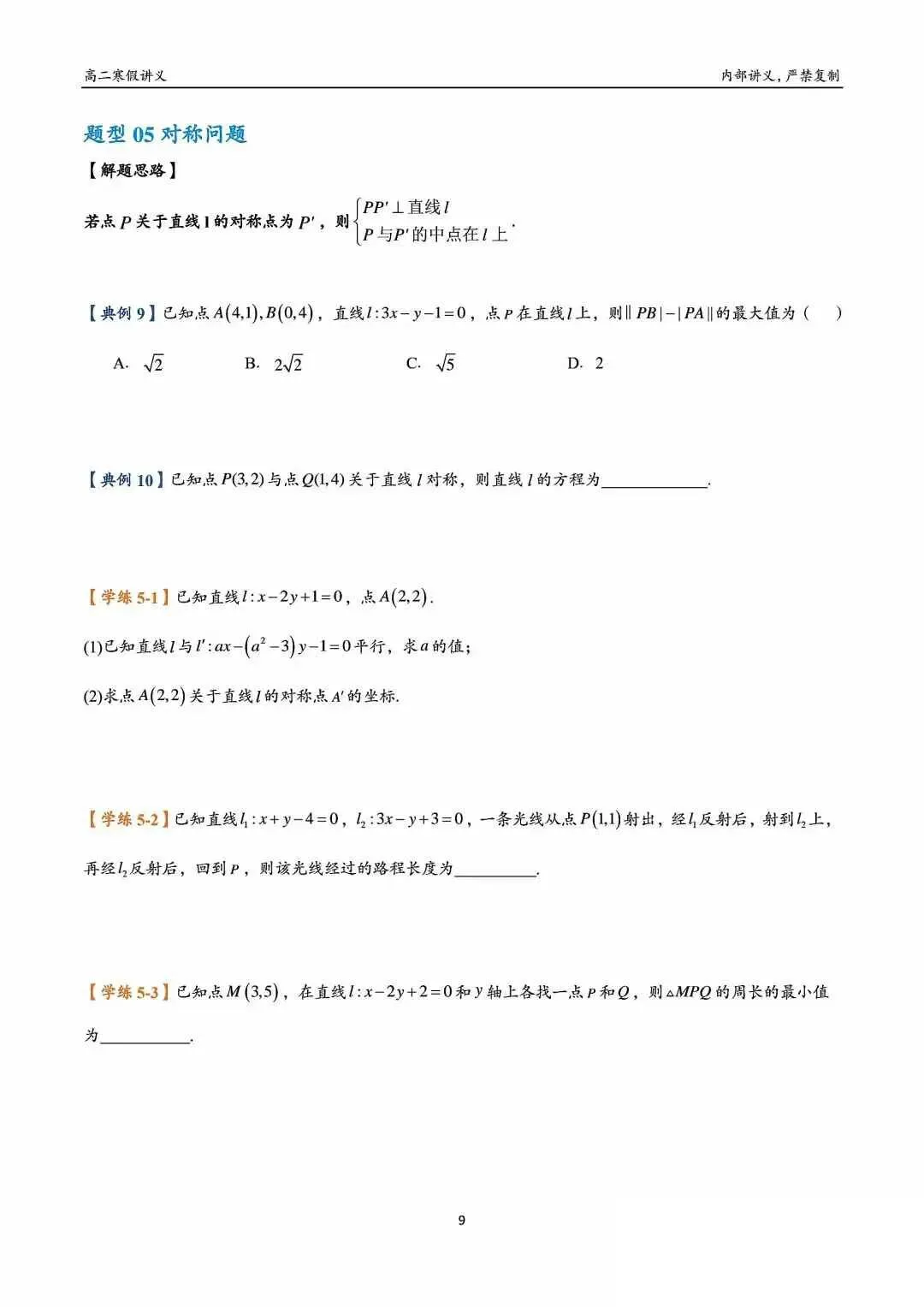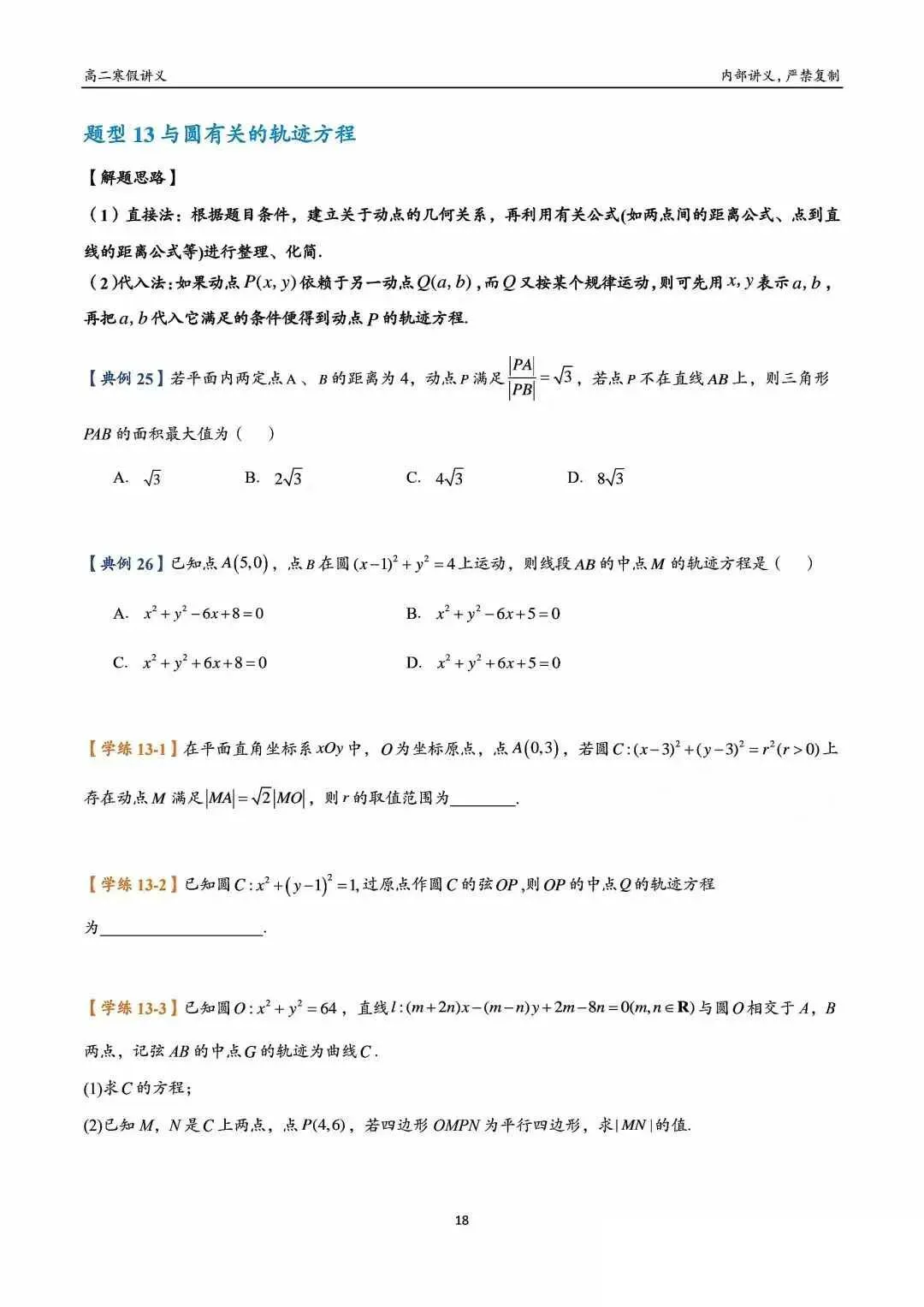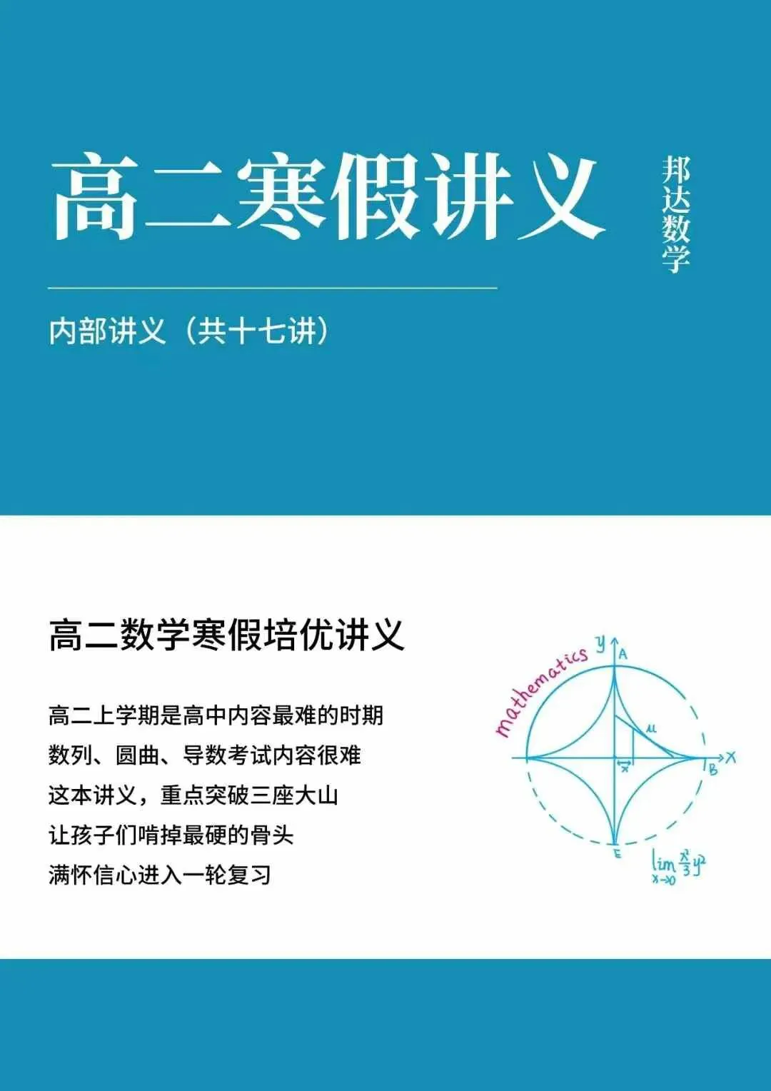 🍎高二寒假讲义以数列,圆曲,导数为主共十七讲。讲义均分为学生版和教师版。