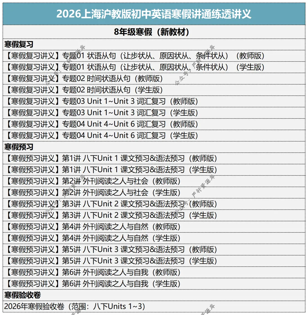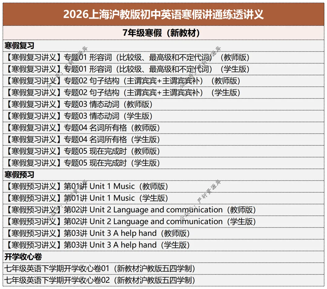 小编今日分享:2026上海沪教版初中英语寒假讲通练透讲义