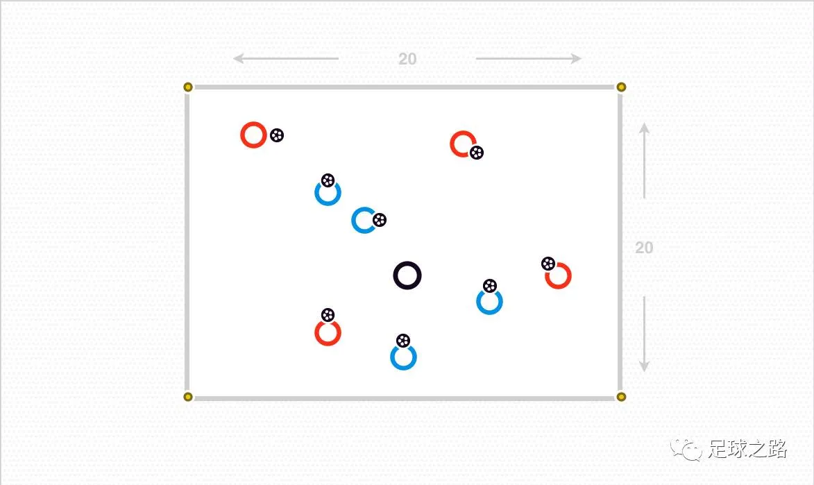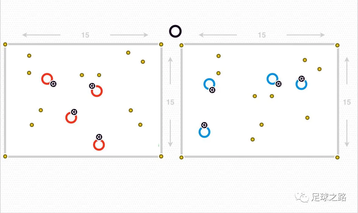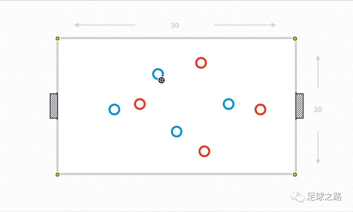 30*20的场地上摆放两个小门小场对抗