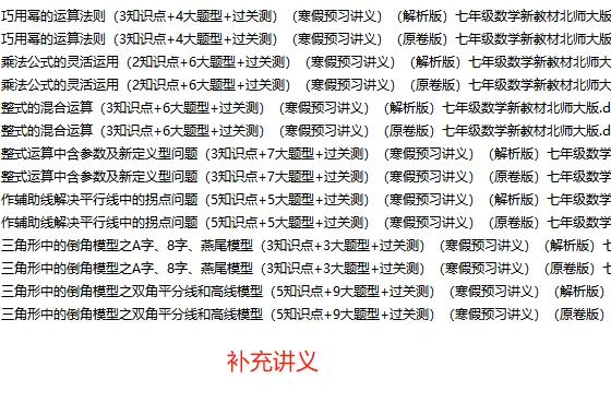 寒假是学生查漏补缺、预习新课的黄金期。针对广东部分地区教学特点,我们全新推出《2026版寒假北师大版七上讲义》,为您提供一套紧扣教材、直击考点的实用预习工具!