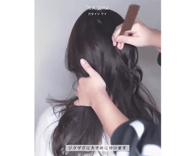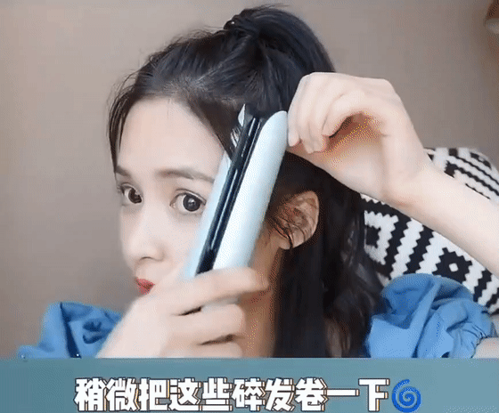 第一步:首先为了追求头发的蓬松度建议将头发卷一下,然后使用梳子进行闪电型分界线,增加一下小个性。