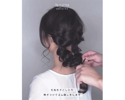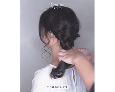 第二步:将扭转编好的头发稍微扯松下,就非常自然蓬松。